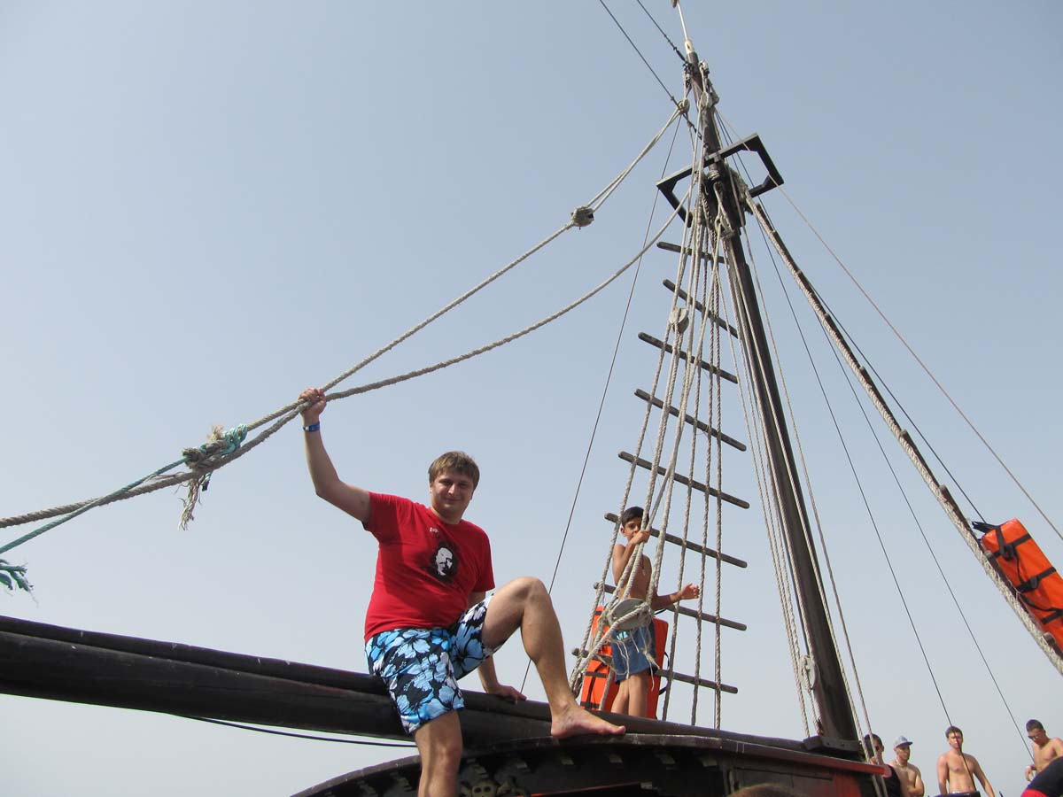 Зараз, мабуть, це входить у моду, все Середземне море борознять суцільні «піратські» кораблі. Що найбільше сподобалося, так це у зв’язку зі зниженим контролем безпеки можна було лазити будь-де, хоч по щоглах. Людей було дуже багато, коли оголосили про вільне плавання, збоку здавалося ніби сотні пасажирів стрибають у паніці з тонучого Титаніка. Кому ж цікаво спускатися сходами, коли можна прямо з найвищої точки щогли стрибнути. Після того, як всі надурілися в морі, подали смачний обід.