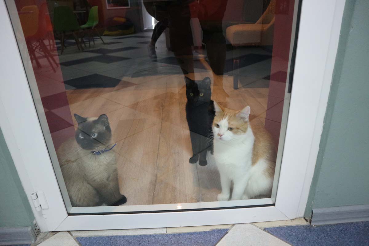 Чесно кажучи, ми від Кишинева багато чого не очікували, я чув відгуки, що це радянський союз і т.д. Але чесно кажучи від радянського союзу тут залишилося тільки найприємніше – ціни. Від вокзалу на тролейбусі ми поїхали по 2 леї з особи (3 грн). Хостел попався трохи галасливий, але заселили чітко. Поки менеджер оформляла наше заселення, зі скляних дверей за нами підозріло спостерігали коти. На стійці лежала брошурка, яка закликає відвідати Cats Café і відчути справжню “мур-терапію”.