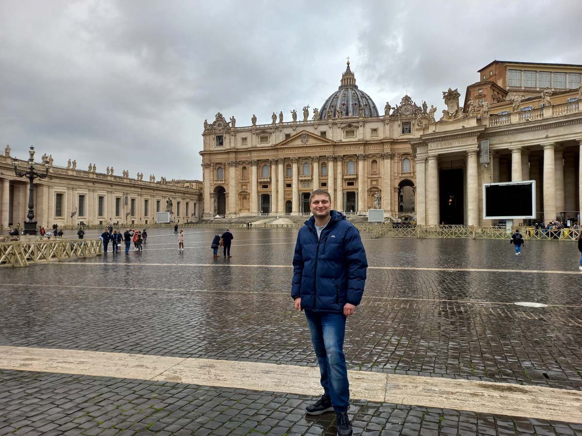 Ось ми й дісталися Риму! Скільки років я хотів потрапити сюди! Скільки було спроб, і ми тут! Шкода правда, що зараз уже ніч і ллє злива, але завтра ми одягнемо свої водолазні костюми та почнемо відкривати це місто! Нам дуже пощастило, що у мами з татом залишилося два квитки на транспорт, якими ми успішно скористалися, перескочивши з фліксбасу на міський автобус. Поки ми йшли до готелю, у нас було перше знайомство з містом. Правду кажучи, з околицею міста, проте якусь розвалену стару стіну вже побачили. Ранок! За вікном щось середнє між сонячно і зараз розпочнеться всесвітній потоп. Терміново поїхали до центру. Як ми з’ясували пізніше, погода нам просто вирішила дати шанс дістатися сухими до Ватикану. Поки ми їхали до метро всіх заливало дощем. Коли ми вийшли з метро, ​​дощу не було.