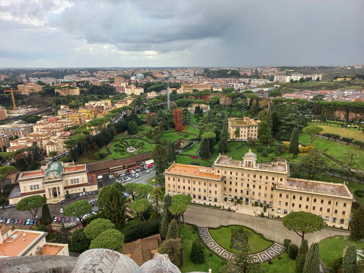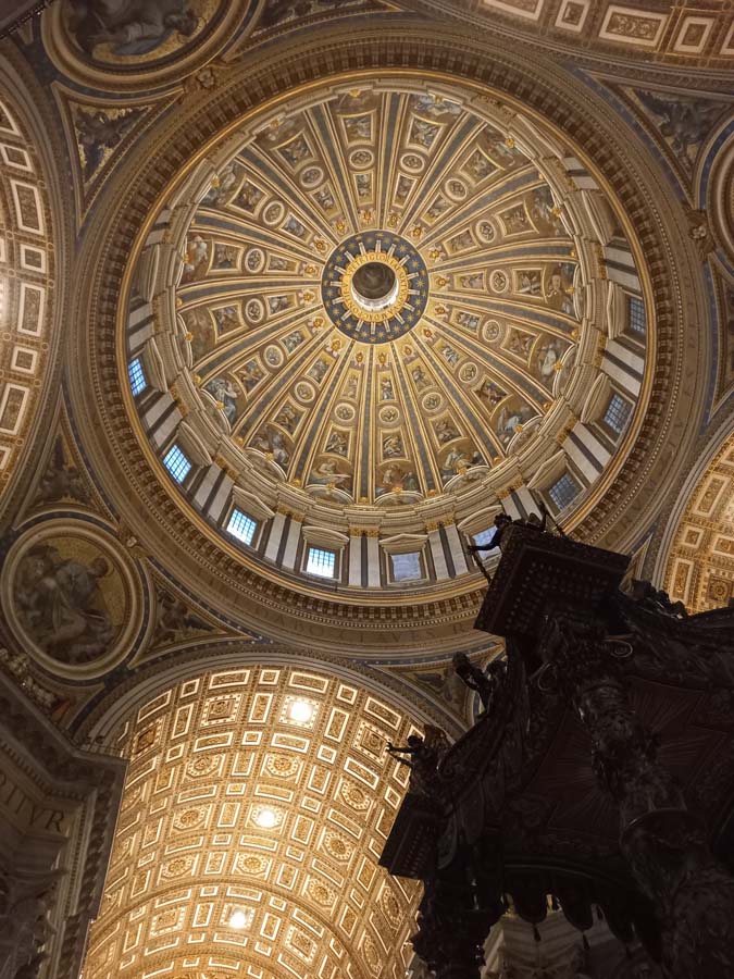 Тарифу було два – з ліфтом і без. Ліфт правда проїжджає лише частину маршруту. Ми вирішили скоротити підйом. І буквально одразу опинилися під куполом собору Святого Петра. Розміри та краса справді вражають, прямо дуже вражають. Чесно кажучи, навіть у голові не вкладається скільки тут виконано колосальної роботи! А ще дехто не вірить, що люди змогли побудувати піраміди. Та ви відвідайте спочатку Ватикан!