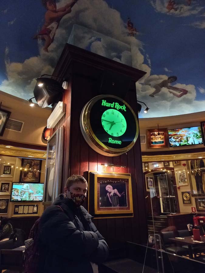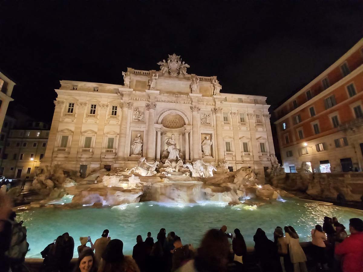 Як нам і казала кума, у Римі куди не підеш скрізь щось цікаве. Цього вечора у нас виявився основний акцент на фонтанах та Пантеоні – чудовому храмі з дірою у куполі, там просто відкрите небо було. За описами, за рахунок потоків висхідного повітря до храму дощ не потрапляє. Але схоже сьогоднішній дощ був винятком або працівники просто підлогу у центрі вирішили намити. На сьогоднішній вечір у нас було заплановано особливу активність – пошуки пляшки зі ста гривнями, яку тиждень тому тут сховали мої батьки. У нас була фотографія тата з пляшкою біля дорожнього знака та мітка на карті. На цей раз це виявився Hard Rock ресторан.