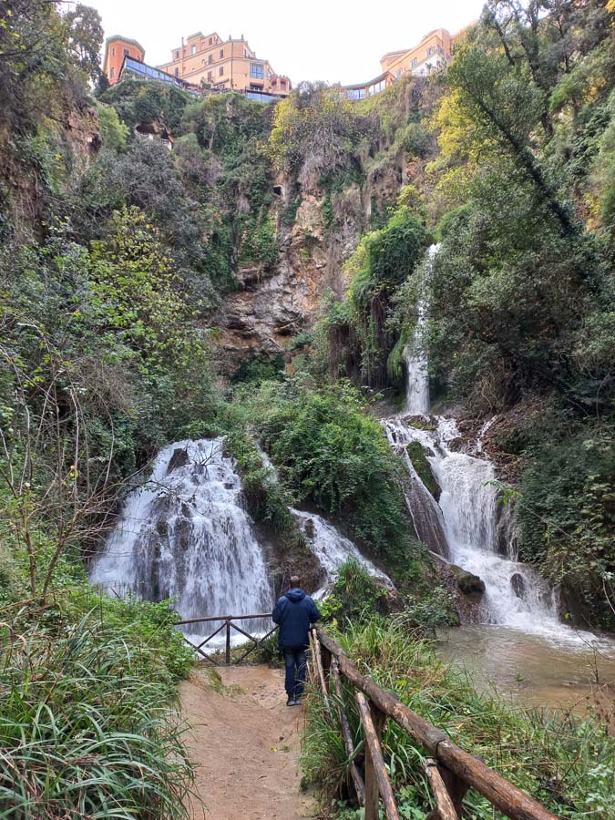 Буквально за годину їзди від столиці знаходиться просто чудовий Тіволі. Ми туди поїхали з самого ранку. Квитки на поїзд заздалегідь купувати не потрібно, тому що це місцева електричка із фіксованою недорогою ціною. Місто ви полюбите ще на під’їзді, коли за вікнами відкриються гірські ландшафти. Тепер, коли ми в місті, необхідно визначитись які вілли ми хочемо тут відвідати. У віллах якраз і фішка міста. Ми вибрали Григоріанську, вхід коштує по 8 євро. Вілла знаменита великим штучним водоспадом у парку. Але чомусь нам дівчина, що продає квитки, сказала, що ходити до водоспаду не можна і ще до визначних пам’яток теж. Пояснила це тим, що небезпечно. Тільки незрозуміло чому. Тобто, ви за вхід платите звичайну ціну, але майже нічого не дивіться. Чомусь фраза “Туди не ходіть, там небезпечно” прозвучала для нас як справжній виклик. Нас чомусь тягне у такі місця. Запаслися картою та пішли маршрутом. Де сама вілла незрозуміло, але каньйон тут шикарний, дуже мило та гарно гуляти. А ось і табличка, що вказує, що по тій доріжці йти не можна оскільки там гарний водоспад. А за нею ще одна для тих, хто не помітив першу, причому другу не помітити складно. Що ж робити?! Після того, як ми ні краплі не сходили, щоб подивитися на 120-метровий водоспад, міць якого може показати, наскільки стихія готова будь-якої миті поставити людину на своє місце, ми просто пішли далі.