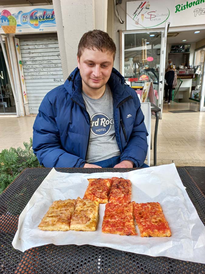 Незважаючи на дуже дощові дні, поїздка вдалася на всі сто, ми тепер її згадуємо з великим теплом. Наступного дня рано-вранці ми повернулися на фліксбасі в Неаполь, де в нас залишалося буквально півтори години, щоб пішки дійти до аеропорту. Ми купили собі в дорогу піци, я ще раз з’їв ту суперпомідорну піцу, яку перший раз скуштував тиждень тому, і ми почали йти в бік аеропорту. Але не змогли пройти повз Макдональдс, заради італійського макфлурі, в яке тут додають снікерс, а поки що літаки і весь світ трохи почекають!
