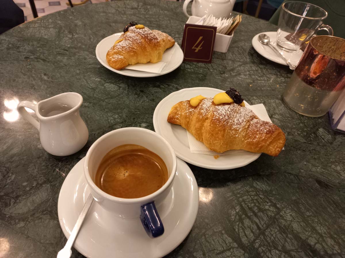 Тепер після піци потрібно автепаті у вигляді італійської кондитерської. Це було кафе з приємним інтер’єром та гарним посудом. Перше чим запам’яталися посиденьки — за одним зі столиків затишної тихої кафешки сидів їхній кухар та обідав, але при цьому йому хтось на мобілці показував відео з повною гучністю. Це було дуже дивно, але нікого це не бентежило. Мабуть, якби ми знали італійську, теж би з радістю послухали))) Але саме кафе запам’яталася цікавим випадком. Ми замовили там два круасани з кремом, каву та чай. Заплатили за це 6,40 євро. Спочатку ми зраділи, як тут недорого вийшло в такій гламурній кафешці, але в рахунку нас здивувала найдорожча позиція – Дашин чай, який коштував 3 євро, майже як два круасани з кремом та кавою.