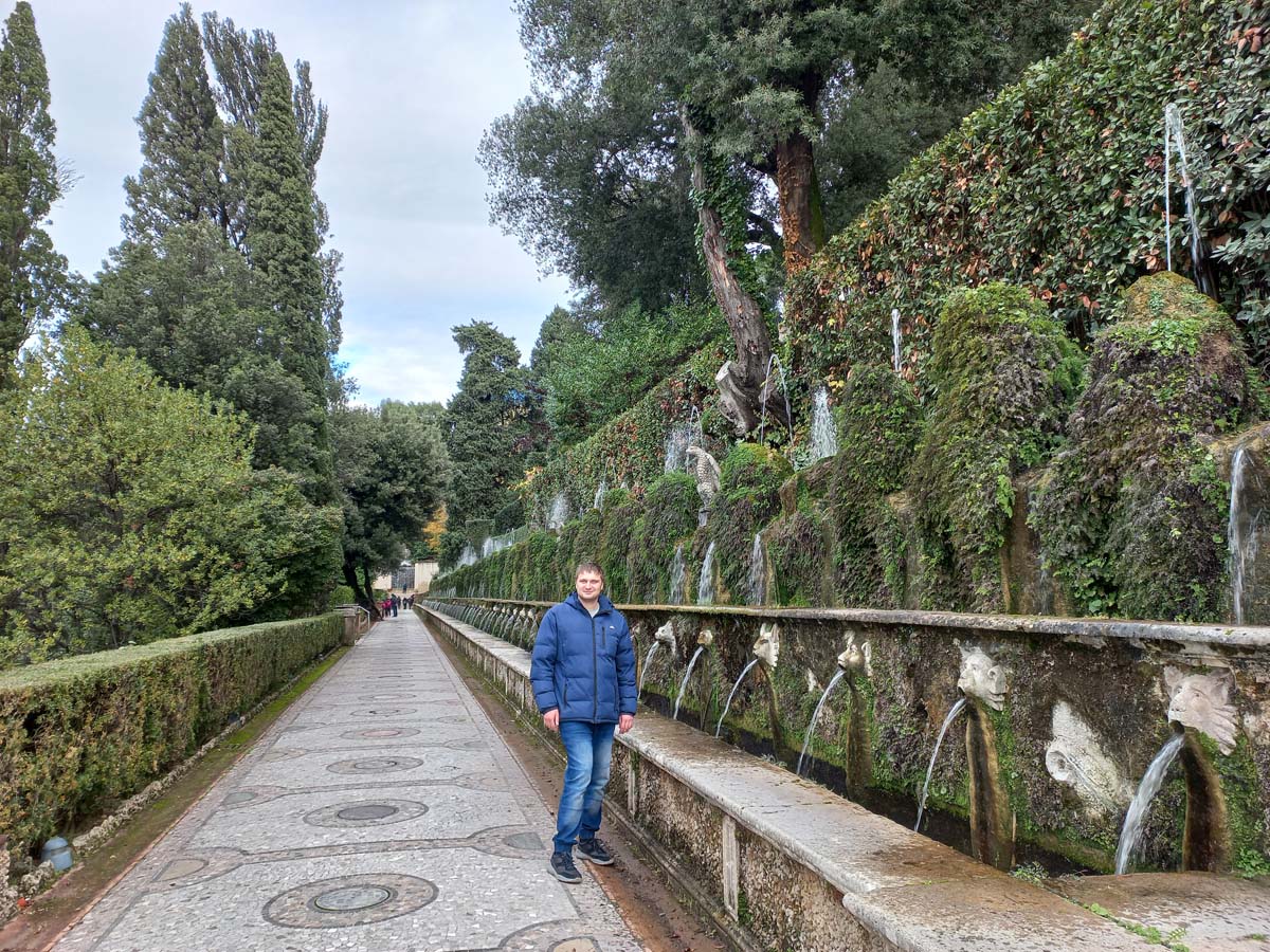 Часу до зворотнього поїзда було ще багато, тому ми вирішили відвідати ще одну віллу — д’Есте. Вхід коштує по 10 євро, тут відвідування ділитися умовно на дві частини – це сама вілла з розписними стінами та стелями та сад фонтанів. Особисто я до архітектури та розписів досить холодний, але сад з фонтанами я відніс би до дива світу.