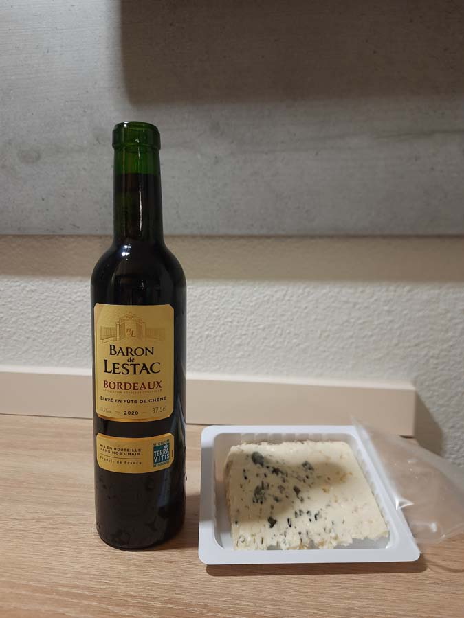 У маркеті бордо було знайти не важко. Вибір великий, ми навіть вирішили гульнути і купили пляшку не за 3,15, а за 3,75 євро! На гарнір білий сир із пліснявою за 2,15 євро. Вино сподобалось, але мене одразу вкрило алергією. Це для мене не характерно, останній раз в мене була алергія рівно 20 років тому.