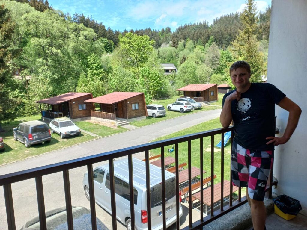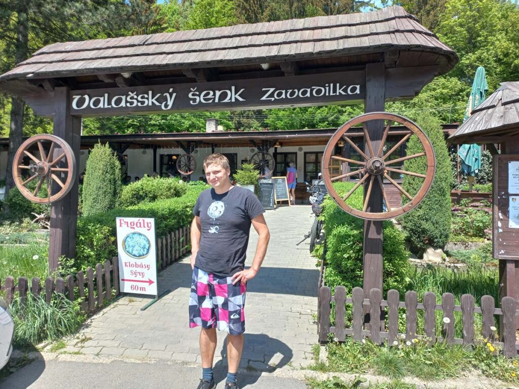 Життя не передбачуване. Тепер ми живемо у Кракові, будні проходять одразу на двох роботах, моя звичайна, та волонтаріат. Про це буде окрема розповідь. На це чеське містечко я вже давно поклав око, але кожен раз на вихідні там стабільно дощі. І ось нарешті буде сонячний вихідний день. Але питання залишається відкритим, як туди потрапити? Ми дуже близько, але все одно далеко. Фліксбас пропонує дуже зручний час. Ми о 09:45 приїдемо до Острави. А звідти о 23:15 поїдемо назад до Кракова. Тобто у нас буде тринадцять із половиною годин, щоб якось проїхати ці 59 км відстані та повернутись. Гугл почав малювати нам автобуси через пів країни. Сподіваюсь, що буде коротший варіант. Ми приїхали в Остраву. Місто не те щоб не романтичне, воно лякаюче. Одразу ж якісь стрьомні хлопці почали ходити поряд. Сподіваюсь, далі буде краща дорога. Тут немає ніякого автовокзалу з інформацією, немає людей, нічого не можна дізнатися, крім отих стрьомних хлопців. І тут сталось щось неймовірне. Даша помітила електронне табло, і сказала, нумо перевіряти на мапі назву міста. З десяти напрямків Даша вибрала якийсь невимовний. Я скептично мовив “Чому саме його?”. Та й здається вони тут усі так невимовно називаються, бо той що нам потрібен, теж був невимовний. Мапа показала що це місто знаходиться за десять кілометрів від басейну! Коли відправлення? За дві хвилини! Але ми ще навіть крони не зняли. На щастя, в усіх автобусах Чехії є пейпас. Отакої! Ми їдемо прямісінько у те містечко що на маминій листівці! Відчуття було як на автобусі до Експо 2020, коли ти не віриш своїм очам, що прямуєш прямо до такої далекої та кришталевої мети. За півтори години ми приїхали до Rožnov pod Radhoštěm, а звідти ще 20 хвилин на автобусі і ми на місці! Ось той самий басейн, той самий ресторан, де я перше скуштував картоплю фрі.