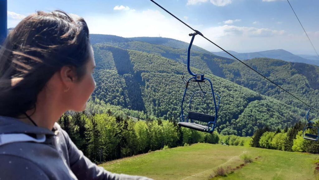 Тут навіть є файні домівки, які були на одній із листівок! А найголовніше — та сама канатка! Тож вперед як вперше! І ось я знову шестирічний їду на підвісній лавці! Пройшло всього якихось 28 років, тільки зараз поруч сидить не мама, а дружина. Навіть канатка майже не змінилась.