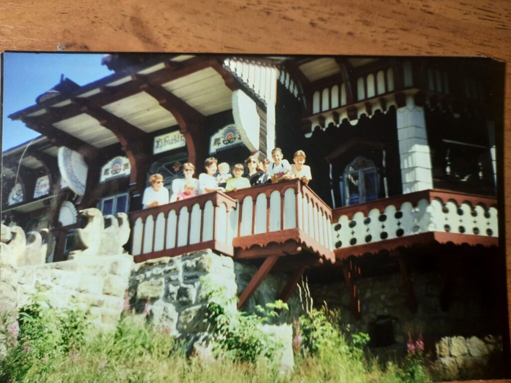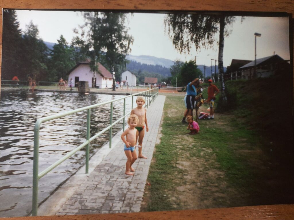 Ми багато гуляли та звісно час від часу блукали. На мапі було вказано, що дорога називається, як я пам’ятаю, “Блуділовка” чи “Заблуділовка”. Ще вздовж дороги росли кущі стиглої малини. Тож нам усім було радісно там блукати. Наша група весь час трималась разом та головним у нас був дядько Паша. Зі слів мами саме він кожен раз о десятій вечора вимикав світло, щоб усі спали. Але коли я намагався відстежити як він то робить, то за “вікном пролетіли двоє білих гусей” ((с) мама), поки ми з Сашком намагались їх побачити світло вимкнулось. Тож ні гусей не побачили, ні те, як дядько Паша вимикає світло. Потім у нас ще була екскурсія до парку розваг, у якому ми катались на американських гірках, та коли була черга виходити, то ми в них лишались і їхали на друге коло. Я тоді ще скуштував хот-дог із негострою гірчицею. Сашко вимагав, щоб хотдог був без гірчиці. Тож йому сказали, що то не гірчиця і він із радістю з’їв та не помітив. Це здається була поїздка до Брно. Там продавалось багато диковинок, нам із Сашею купили браслет-веселку. І на вигляд Сашкові дісталась трішечки довша, хоча я перший обирав яка дістанеться мені. Хтось, пам’ятаю, купив собі мікрофон з якого бризкала вода, а ще якийсь хлопець — бумеранг.