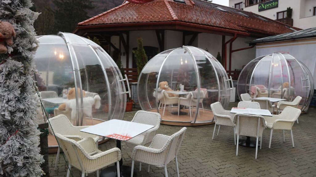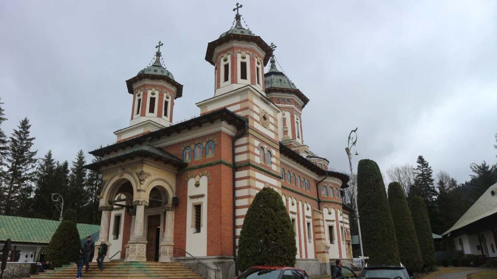Окрім мене було ще чоловік 10 на горі, але вони всі ходили групкою, а так не цікаво, єдине що мене напружувало, це застережна табличка “Не годувати ведмедів”. Тож була надія ще побачити ведмедика. Скажу чесно, нагулятися там неможливо, гори це завжди добре, у будь-яку пору року. Але нажаль час і сили не нескінченні, першим здався мій телефон, він так і сказав “Залиш мене тут, йди без мене!”, а я йому, “Ні, мій телефоне, ми з тобою пройшли багато країн, ти ще будеш подорожувати!” Тож я його взяв з собою і ми разом спустилися з гори крізь хмари та вздовж водопаду. Внизу телефону стало помітно краще і він навіть включився. Тепер запланована програма виконана, можна подивитися що тут ще є цікавого. Але із цікавого у цьому місті є ще дуже гарний монастир із не менш колосальним будівництвом на його території. Тож тепер можна нарешті повноцінно поїсти і рухатися в сторону потяга. Навігатор мені показав велику кількість ресторанів із високим рейтингом, але кожний із них виявлявся невеликим лоточком із фастфудом. Чомусь справжні ресторани мають у цьому місці на порядок нижче рейтинг ніж шаурма. Але я все ж знайшов собі ресторан зі смачною місцевою кухнею. Щоправда, ресторан не був розрахований на людей що спускаються с гір, і тут, чомусь, увесь час потрібно було ходити по сходах. Після трапези була дилема, чи зробити ще коло навколо міста та подивитися визначну пам’ятку без опису, чи на поїзд, на щастя я в собі знайшов друге дихання і пішов до визначного місця. В тому місці де була позначка, не виявилося нічого, але все одно радий що непогано прогулявся на фоні високих гір. Поїзд, в який я сів, був підозріло дешевим. Але, як виявилося потім, це поїзд якраз для тих хто спустився з гір, я б сказав “відпочивальний”. Бо до Бухаресту він їде через половину Румунії. Знову таки я не жаліюся, що сів саме на повільний потяг. У Бухаресті на мене чекав мій п’ятизірковий хостел, оскільки чотирьохзірковий готель компанія оплачувала тільки на час відрядження. Тож я жив вперше в житті у п’ятизірковому хостелі. Це коли при заселені тобі чай масала як велкам дрінк приносять)