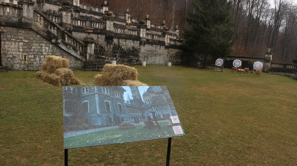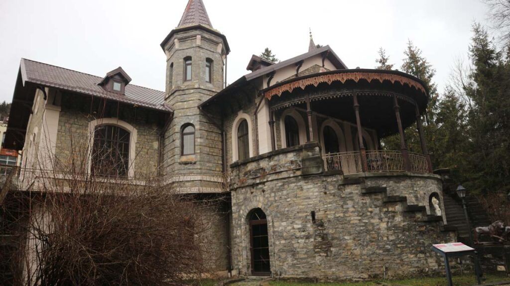 Тепер приблизно 10 хвилин на поїзді і нова локація, новий замок. Цей замок став популярний через зйомки серіалу Венздей. І коли я зрозумів що замок доволі поруч із Пелішом, то вже мріяв коли я там опинюся. Тим паче зараз як раз хвиля популярності серіалу. На щастя, на відміну від Пеліша, замок Кантакузіно вирішили не будувати так високо, проте як і водиться справжньому «Невермору» він знаходиться трохи на віддалені від міста. Мерщій до замку!