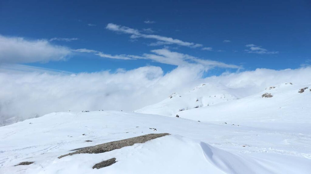 Його в прямому сенсі слова перехопило. Невже це старість і гірська хвороба тепер починається на 500 метрів нижче ніж раніше? Але на щастя акліматизація пройшла доволі швидко. Я вдягнувся тепло, але був у літніх кросівках. Тут треба обирати, або увесь день буде пекельно спекотно в ноги, або на горі може бути трохи слизько і можливо волого. Тепер я серед білосніжної пустелі, тож вперед відкривати нове.
