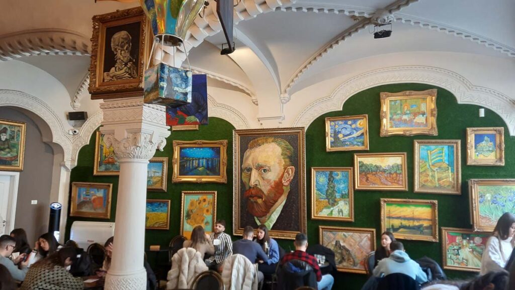 Один із ресторанів який вважається кращим у Бухаресті, дійсно зайняв краще місце в моєму рейтингу, сюди можна приходити вже заради того, щоб отримати естетичне задоволення від його інтер’єру та канонічної місцевої кухні. Все це проходить під локальні танці, що відбуваються кожні 20 хвилин. Для ближчого знайомства із містом я кожний вечір ходив пішки через усе місто до центру і назад. Саме так я і відкрив красу парків.