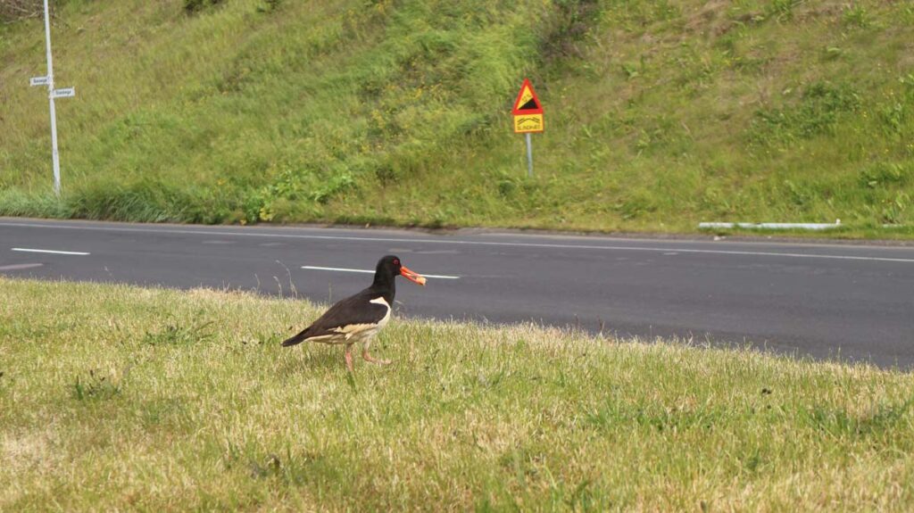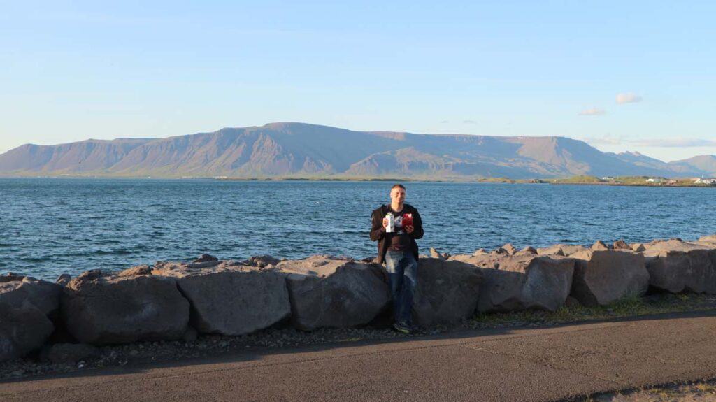 Ми чесно, хотіли з радістю розказати, але окрім слова Скогар, ми банально не могли ані запам’ятати, ані вимовити назви ісландських міст. В кращому випадку ви там знайдете знайомі літери. Тож ми за 5 хвилин доїхали у Vestmannaeyjabær😉. У місті на нас чекав справжній королівський обід, виключно для людей із “золотою карткою” – ми собі змогли дозволити дві шаурми! На десерт я навіть з’їв ще одну шаурму, а у маркеті що поруч навіть купив маленькі сочки. Блаженні пів години відпочинку від вітру і можемо продовжувати маршрут.