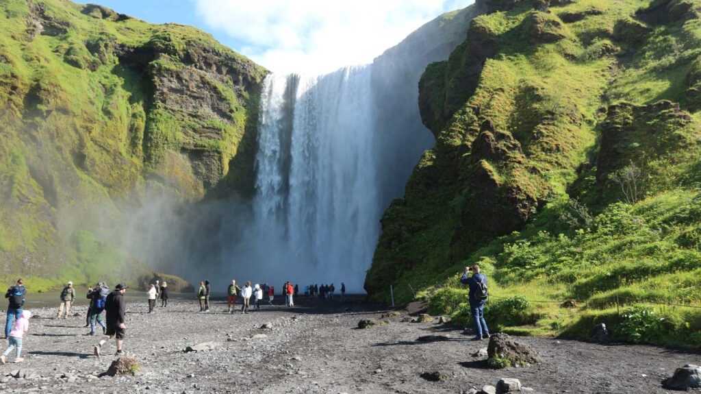 Всупереч рідкісній сонячній погоді, усі туристи тут були мокрі як після сильної зливи. Водоспад настільки зручно розташований, що хочеться з головою поринути у цю потужність. Я переживав, що у фотоапарата це буде перший та останній день в країні. Але на щастя, не дивлячись на густий серпанок, техніка вижила, для нашого водонепроникного одягу це було справжнє випробування.