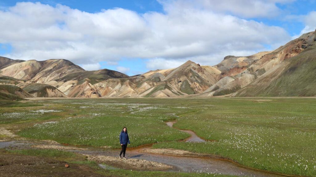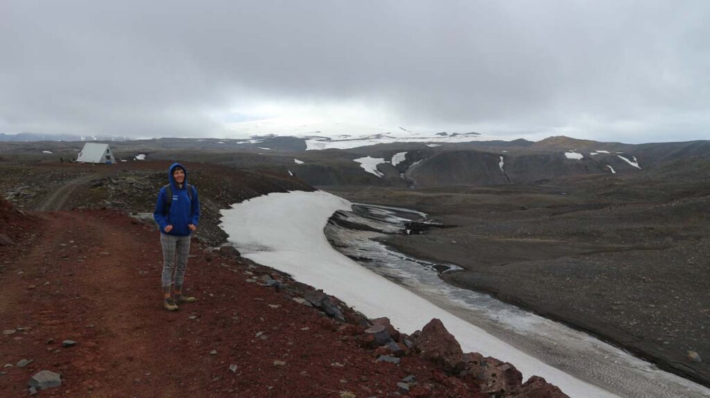 Йти пішки треба приблизно 8 годин, кожну годину треба звірятися з прогнозом навігатора, і важливо бачити, що прогноз не відстає, бо у навігатора вже неодноразово бували критичні для нас помилки в прогнозах. Перші 4 години дорога буде йти вгору до висоти одного кілометру. Дорогу я б не назвав нудною, бо раз на 20 хвилин ти гарантовано отримуєш пречудовий водоспад, при тому вони всі різні! Окрім рідкісних туристів на маршруті з нами йшли три вівці. Тут, до речі, вівці ходять завжди по троє. Темп треба було тримати доволі швидкий, бо навігатор не враховує сотню фотостопів і коротких передихів, щоб провітрити ноги після герметичного взуття. Ці перші години маршруту були сильним полегшенням, бо Ісландія таки дійсно красива, зовсім не така, якою вона виглядає коли їдеш головною дорогою.