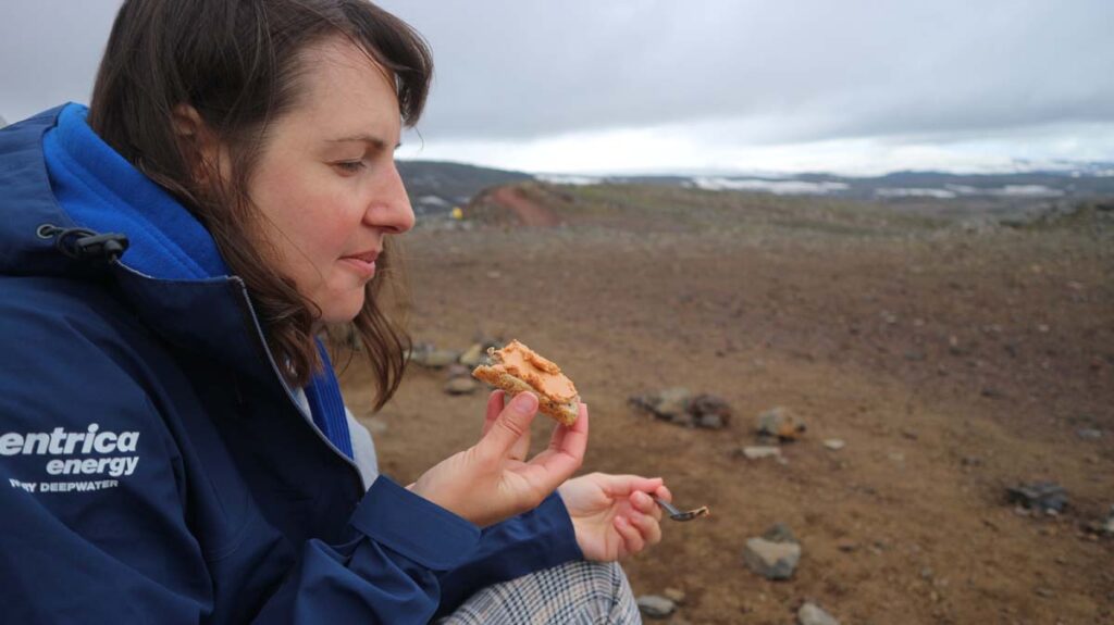Де-не-де на землі почав з’являтися сніг і ми нарешті дійшли до табору. Це була середина маршруту, тут можна було за гроші набрати води. Якщо в той момент сім євро за два літри води ми готові були віддати, то за те, щоб перепочити всередині ще 7 євро зверху не дуже. Тож у нас був мальовничий обід з позаземними видами.