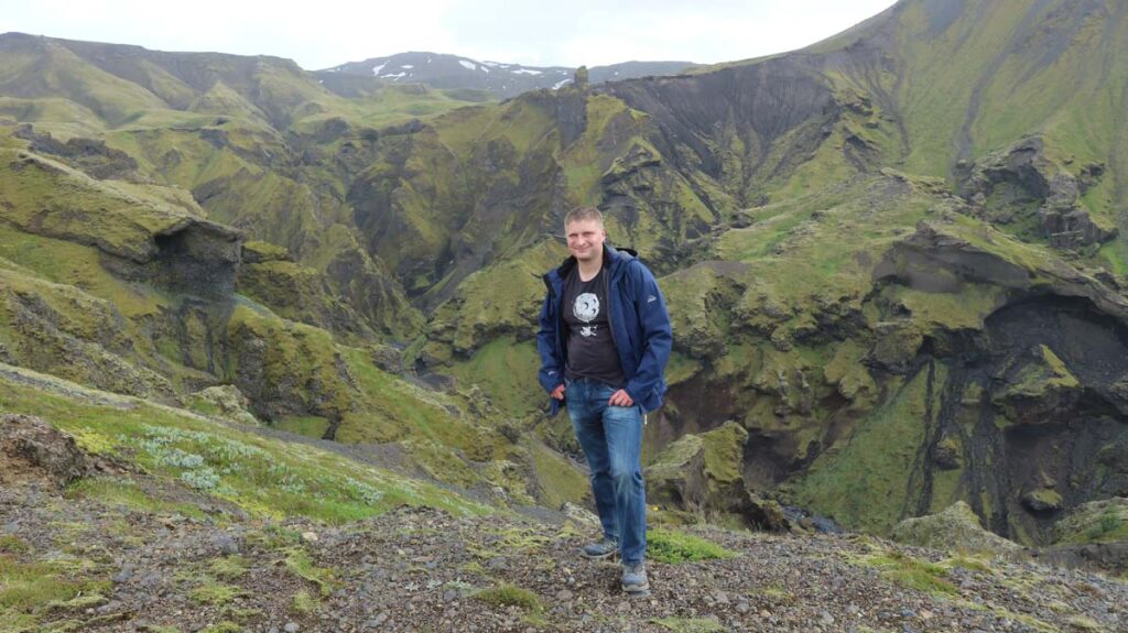 Ранок почався із дрібної приємності. У нас був невеличкий десерт, бо хтось на столі залишив ягідку лохини. Ми її поділили і радісно поласували після сніданку. Може і ми колись дійдемо до рівня, що будемо купувати лохину в Ісландії, але краще за ці гроші купити ще один переліт куди-небудь)))) Тепер треба розв’язувати питання зберігання речей. Можна їх залишити в хостелі, але потім треба буде зайвий раз йти до хостела, тож вирішили використати вже перевірений спосіб – заховали біля зупинки в тому самому лісочку. Тепер можна їхати за пригодами. Їхати знову кілька годин, але якщо вчора основними завадами були ріки, то тепер автобус їхав по застиглій лаві. Я думаю, що цим маршрутом не варто їхати людям з пломбами в зубах, бо вони точно вилетять. Дир-дир-дир і ми на місці. Тут у нас є близько п’яти годин до зворотного автобуса. Тепер давайте я вас познайомлю з тим, де ми саме.