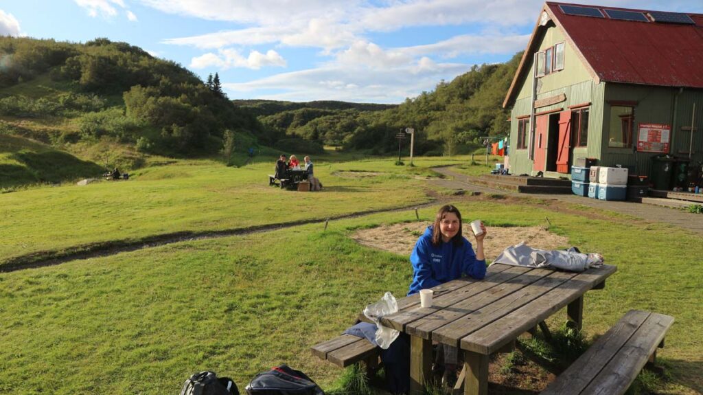 Пора йти спати, готуватися до рекордної кількості кроків в житті. У липні в Ісландії нескінченний день. Тобто нескінченний в прямому сенсі цього слова. Як перевага це те, що тебе в горах ніколи не застане ніч. Тут ти не обмежений світловим днем, тож шанс побачити шикарний водоспад під сонячним сяйвом тут є 21/7, тобто майже о півночі сонце сяде і буде трохи темніше, але сутінок не буде. На щастя усі хостели обладнані блекаут-шторами. Наш перший хостел на маршруті був королівським, тут навіть загальний душ був.