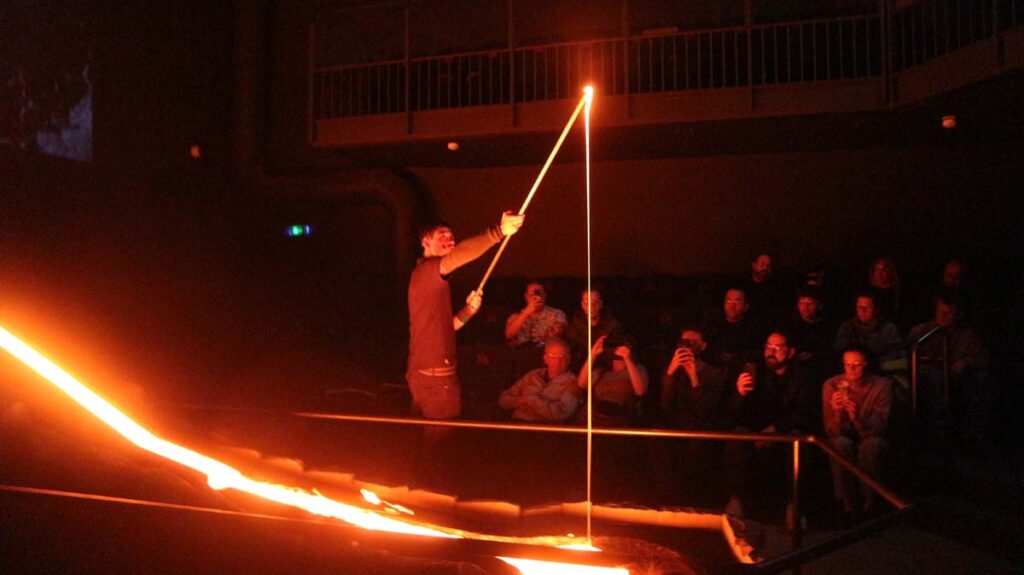 Одне з небагатьох розваг у Рейк’явіку це лава-шоу. У нас були куплені квитки на останній день, але оскільки маршрут складався ідеально як пазлики, тож у нас випала можливість зекономити час останнього дня. Ми прийшли перед початком шоу і менеджер нам люб’язно змінила дату у квитках на зараз. Шоу класне, тут виливають справжню лаву та розповідають про її властивості та небезпеку. Інформація дійсно стане в пригоді і може навіть врятувати життя тим, хто збирається відвідати вулкан. Мене ж дуже цікавила інформація скільки разів треба вдихнути токсичний вулканічний дим для того, щоб померти. Тобто чи достатньо одного разу вдихнути? На жаль для нас, ведучий не знав точної відповіді. Але враховуючи наші плани, нам було дійсно життєво важливо знати правильну відповідь. Бо, по-перше, виверження вулкана чітко збіглося з нашими датами подорожі, а по-друге, вже тепер останній день дивом вийшло розвантажити від планів. Тут логіка така, якщо пропустиш якесь визначне місце, то завжди можна повернутися, а от виверження вулкана ми зустріли вперше за 12 років подорожей. Але поки що у нас маршрут сплановано в діаметрально протилежну частину острова. Тож полетіли, політ триватиме цілих 38 хвилин!