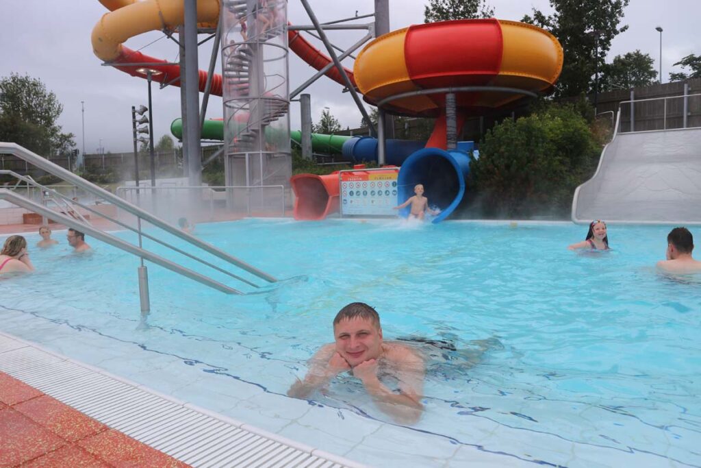 Тож залишилася тільки одна дорога, якою в Ісландії мають закінчуватися дні – термальний аквапарк! Ціни в усі термальні аквапарки країни в межах 8 євро з людини. І їх точно треба враховувати в бюджет для відновлення організму. У аквапарку цього острову є приємна деталь – гірочка з батутом, я ще ніколи на таких не спускався, це коли на середині спуску тебе викидає на батут і з нього вже вилітаєш в басейн. Головне, щоб волосся бурульками від вітру не покрилося тільки. На наступний ранок нас чекало дві речі: штиль та пором з острова)