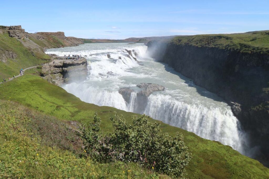 Гейзер… що вивергається кожні 4 – 6 хвилин, чи шикарний він? Так, він дуже шикарний. Це точно те саме місце, яке повинно бути в маст сі списку подорожі. На щастя, нам тут виділили півтори години. Тож можна і надивитися і нафотографуватися і навіть на сусідню панорамну гору залізти і зверху подивитися. Температура води в гейзері 80 – 100 градусів. Усі ріки поруч теж такої температури. Під час виверження потужність гейзера передається і проходить крізь усе тіло. Ми вперше бачимо справжній гейзер і він дійсно не підвів по очікуваннях. Поруч ще є старий, перший однойменний Гейсір, але він трохи “зламався”, тепер вивергається в кращому випадку три рази на день. Але кожний підходив до нього спробувати удачу. Це природне явище ще цікаве тим, що кожен раз ти чекаєш, щоб подивитися, тобто не просто статична картинка красивого пляжу, а щось таке, що треба кожен раз чекати, щоб кілька секунд подивитися. За півтори години ми навіть кілька раз побачили подвійне виверження. Далі був водоспад, потужний і великий.