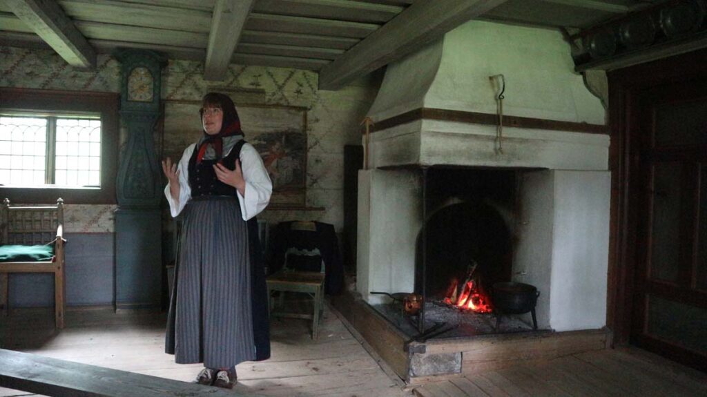 Он якийсь будиночок премилий. Зайшли в середину, там сиділо кілька туристів і автентично вдягнена жінка біля розпаленої печі. Жінка сказала, оскільки ми усі в зборі, то ж можемо починати розповіді місцевих казок! І закрила двері на замок, щоб ніхто не заважав.