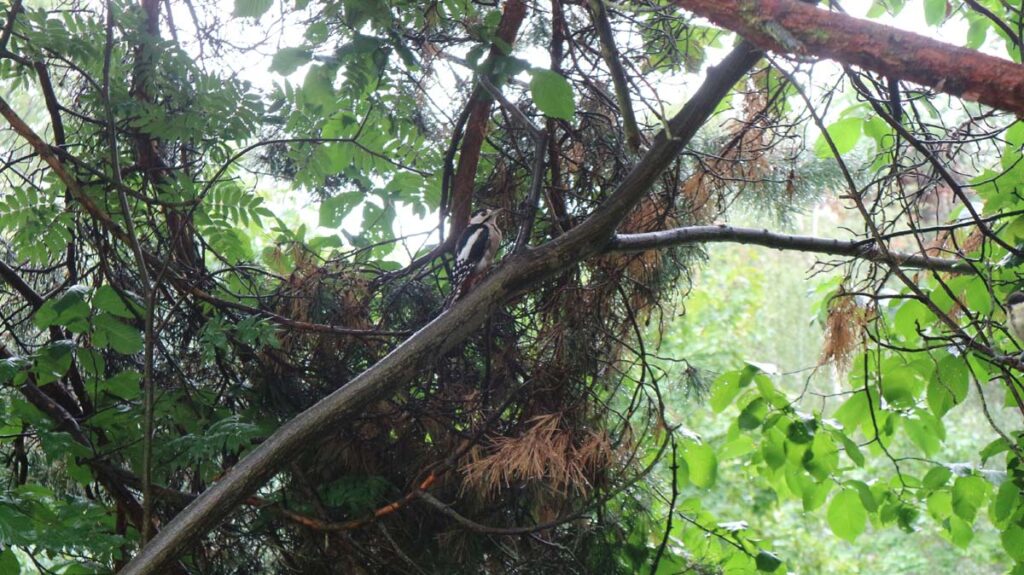 Далі блукаючи крізь будиночки та старовинні паркові вулички ми прийшли до вольєрів з тваринами. Але фішка була не стільки у тваринах, як у білочці, що ласувала смаколиками у туристів прямо з рук, синичкам, що прилетіли і чекали, коли білочка поступиться місцем і маленькому дятлику, що сидів поруч в черзі за синичками. Це все було схоже на справжню лісову казку, коли люди і хазяїни лісу живуть в одній гармонії.