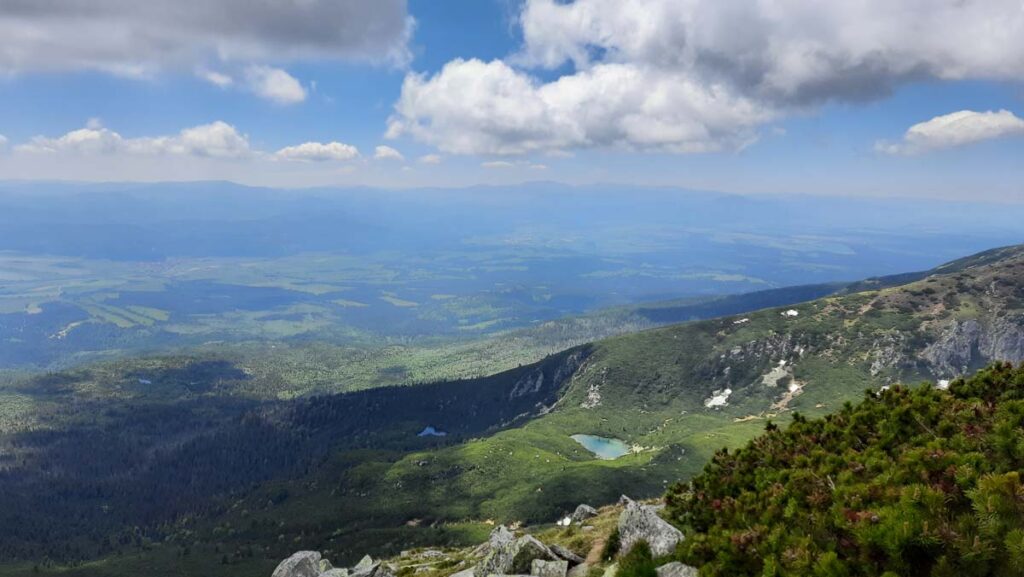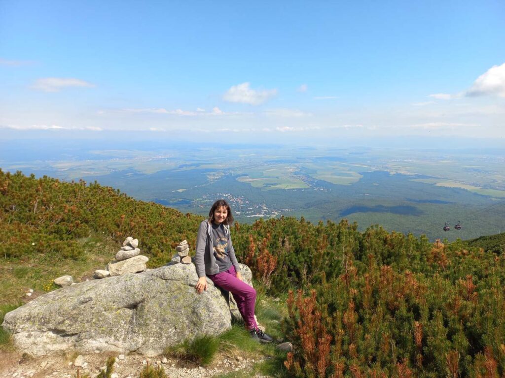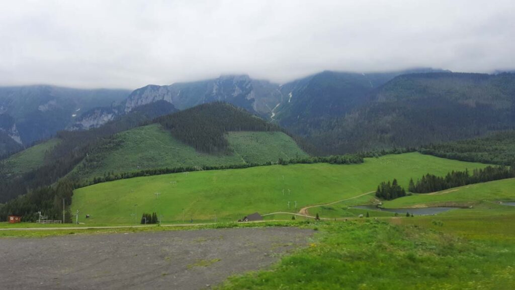 Файне, красиве. Але спочатку гори! Де тут канатка? Далі події розвивались наче в якомусь анекдоті. Треба було лише сісти на підвісну лаву, тільки ноги відірвались від землі як ми зрозуміли що телефон Даші залишився у потягу… Ми їдемо у гори де майже не буде зв’язку. Але це цивілізована країна, хтось обов’язково його знайде. Але є одна проблема, головне, щоб телефон не віднесли до поліції, бо із нашим невизначним статусом що до перетину внутрішніх кордонів аж ніяк не треб зайвий раз паспорти на перевірку давати. Як тільки доїхали на гору одразу поповнили роумінг на сім картках, телефонуємо…Ніхто не бере… У цей момент жінка намагалась розібратись як на українському телефоні взяти слухавку))) Ситуація доволі знайома, мав таку ж проблему коли знайшов чийсь телефон у Туреччині і теж не міг взяти слухавку… З другої спроби усе вдалось і жінка повідомила що телефон на залізничній касі буде нас чекати до вечора. На щастя мова у Словаччині зрозуміла на слух. Хоча можливо вона просто розмовляла польською з нами. Тепер на один гаджет у нас менше, ніщо не буде відволікати від місцевих панорам, а вони тут як завжди неперевершені. Тут є і види на озера і навіть сніг.