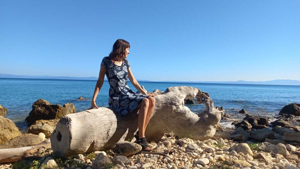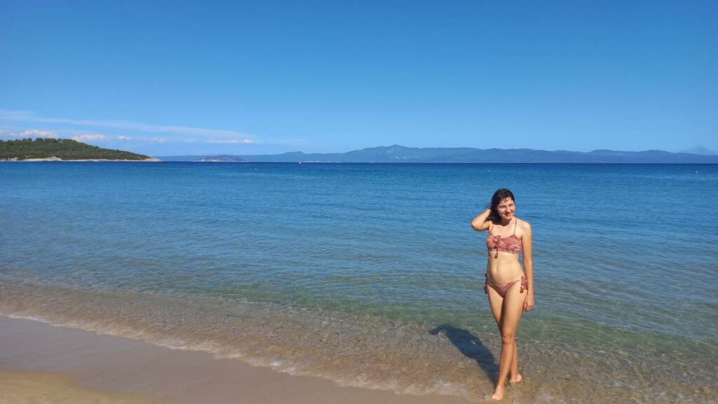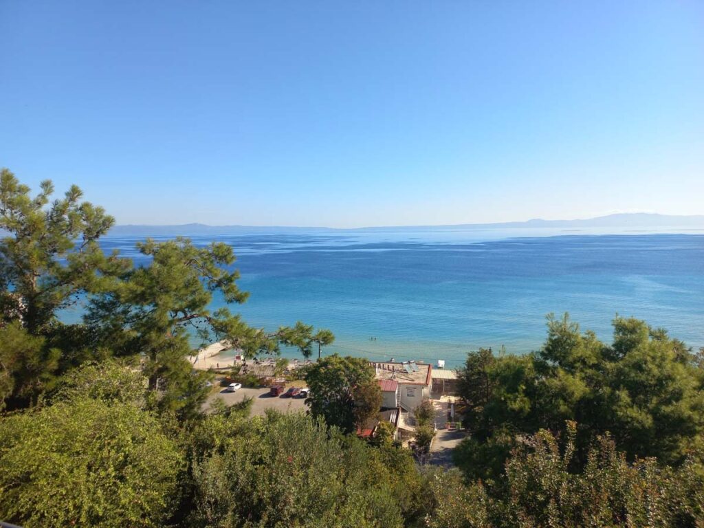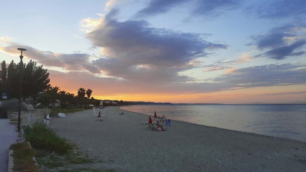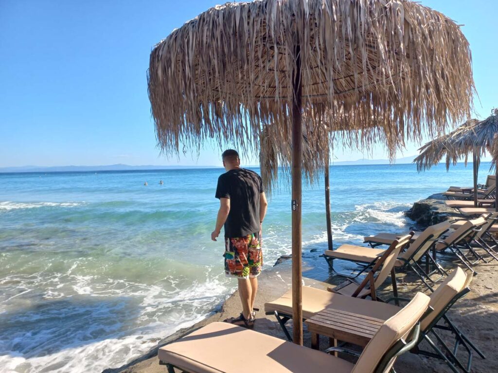 Дивний факт, але у самій Німеччині автостоп ніколи не працював. З автобусами нам не щастило по повній. На цей раз десь у хвилину ми розминулись з автобусом. Тож пішли наше “невезіння” восьминогом заїдати) Далі ми тримали маршрут через два найпопулярніших пляжі. Водичка у Glarokavos Beach виглядала дійсно пречудовою. Але все одно нас не покидало питання, навіщо сюди аж на тиждень пакетами прилітати. По факту, на курорті із розваг тут тільки морська прогулянка і можливість з’їздити у Салоніки. Хоча це дивно, якщо брати за приклад ту саму Туреччину, то там майже із будь-якого курорту можна взяти тур до будь-яких визначних місць країни.