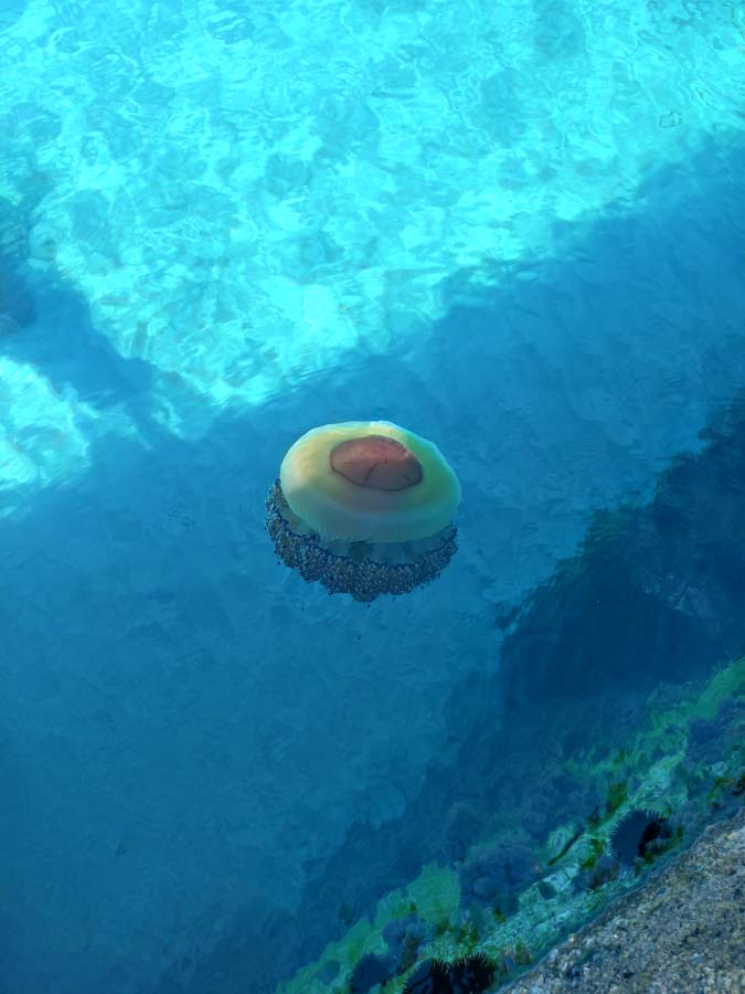 Це коли ти без мети йдеш по узбережжю і шукаєш всілякі цікавості. Наш маршрут склав приблизно годину і коли здавалось, що нічого вже цікавого ми не знайдемо – ми зірвали джекпот. Під берег приплили дві дуже цікаві медузи королівського розміру. Я думав, що щось подібне можна зустріти в Австралії, цей монстр, мабуть, може людину цілком заковтнути і почати полювати на наступну. Хоча ми були на березі, медузи-велетні почали пливти у нашу сторону. Вони нас явно відчували.