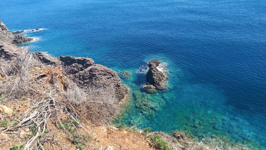 Зранку ми смачно поснідали вже у любій нам кафешці і поїхали у Поліурі. Водій автобуса навіть перепитав чи дійсно нам треба саме у це маленьке містечко, яке знаходиться далеко від пляжів. Але насправді нам потрібно було ще далі, але туди не ходять автобуси. Треба було пройти ще 2 години пішки із перепадами висоти. Але ми вже зрозуміли, що з автостопом проблем не буде, тож ми практично пересіли з автобуса у машину. В середині машини схоже до нас була буря пустелі, чоловік пояснив, що він просто має дуже активного цуцика. Як же добре, що він не посоромився гармидеру і взяв нас із собою. Тому що не дивлячись на легкий автостоп, машини у цій глухій частині острова проїжджають не часто. Чоловік їхав не до самого кінця нашого маршруту, але на щастя значну його частину, та усі перепади висоти. Десь хвилин за 30 ми дійшли кінця Греції!