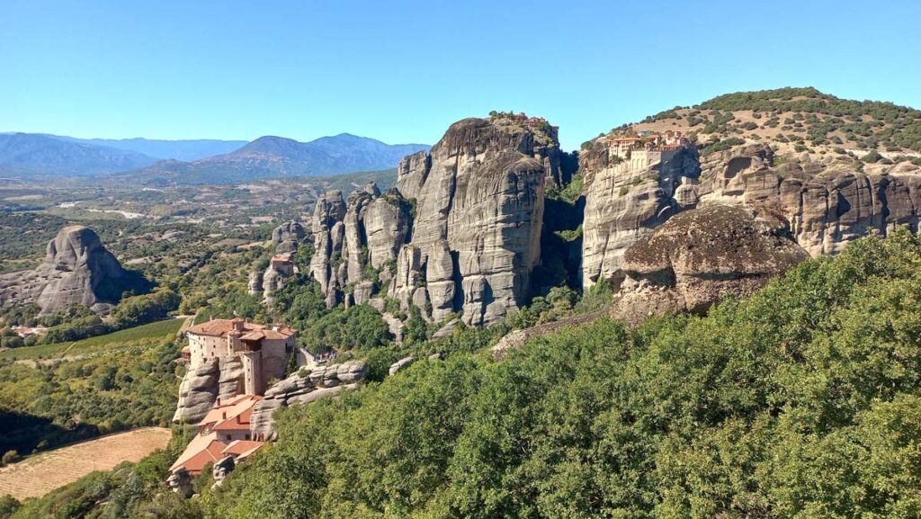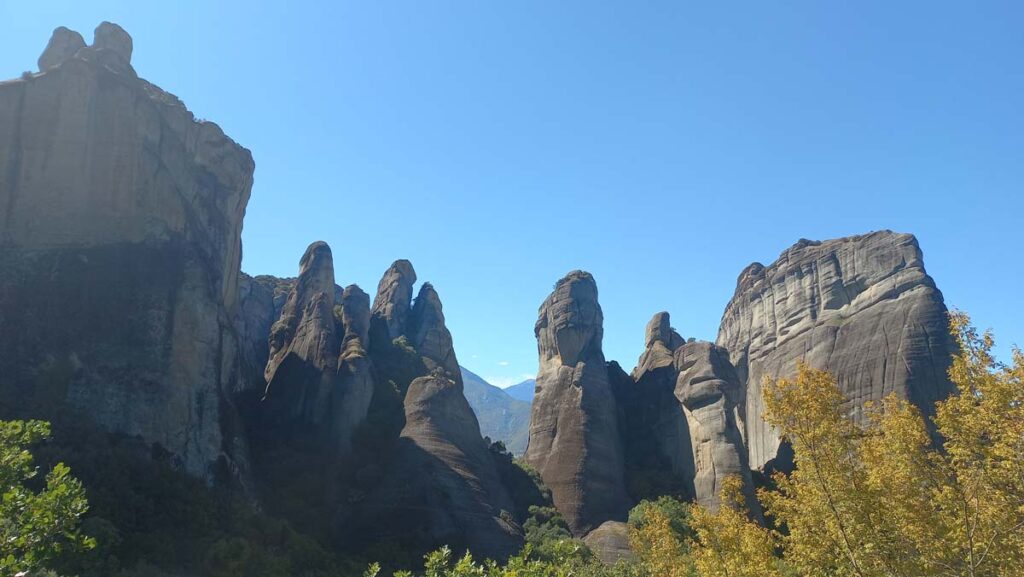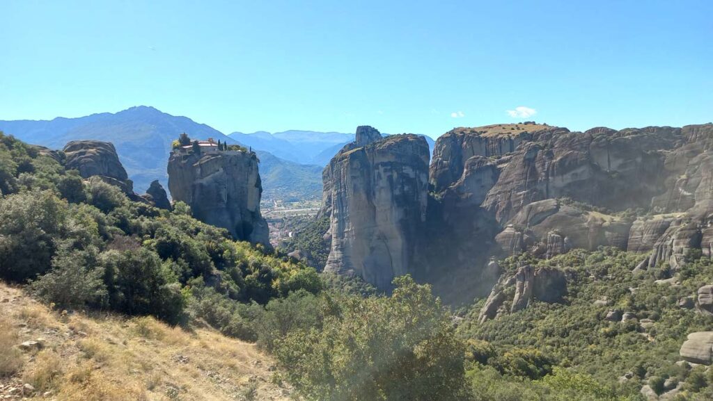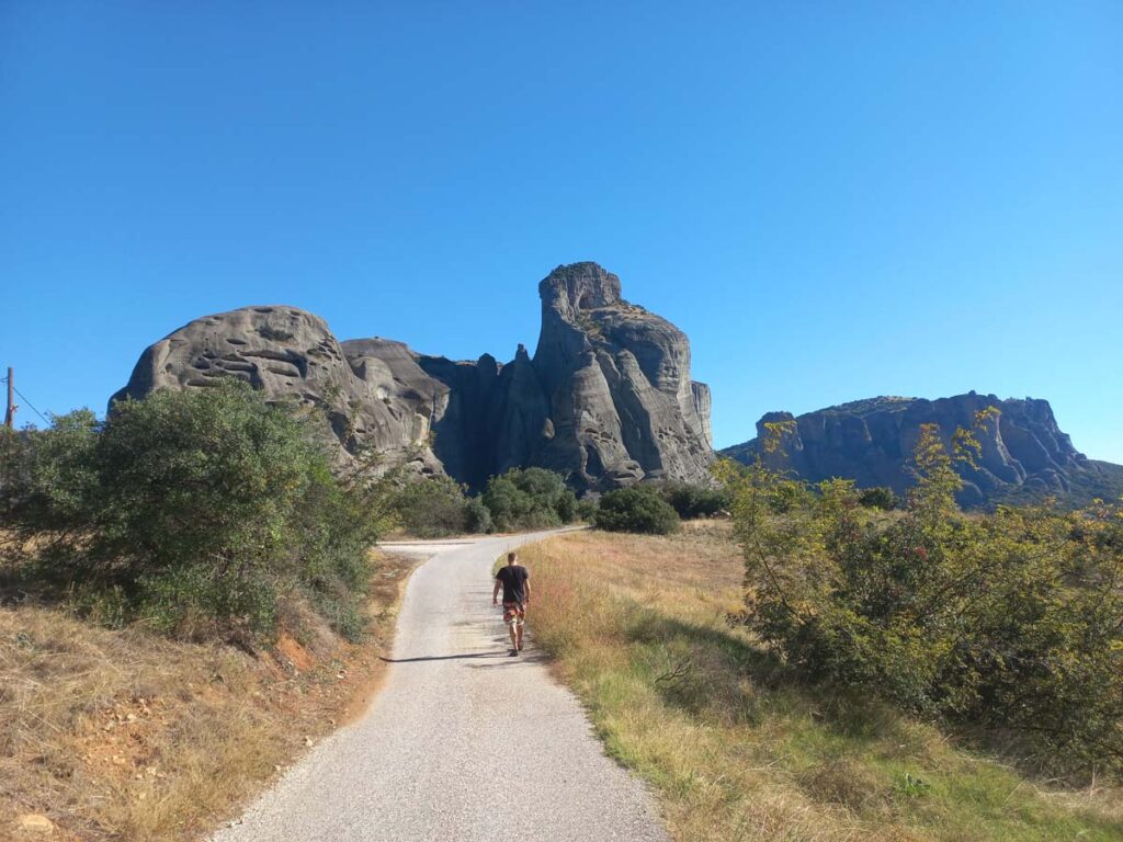 А тепер те, заради чого дійсно треба побувати в Греції (не враховуючи грецького салату). Окрім класної назви, саме тут знаходяться знамениті Метеори. Коли ми приїхали, було вже темно, але коли ми йшли через центр, то бачили як великі скелі нависають над містом. В голові одразу промайнуло “Схоже ми знайшли другу Каппадокію”. І тут дійсно багато спільного: теж багато ресторанів місцевої кухні, теж бурлить нічне гастрономічне життя і тут теж є маршрути і долина, ну і звісно головне це скелі із монастирями. Тут немає повітряних куль, але у противагу тут є монастирі. По розмірах для трекінгу ми оцінюємо метеори менше за Каппадокію десь в 6 разів. Тож двох днів тут вистачить, щоб зазирнути у найпотаємніші стежки у скелях. Коли вже настане той ранок та можна вирушати на маршрут???