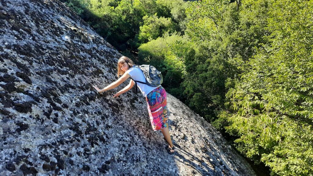 А також слідкуйте за розкладом монастирів, вони тут працюють не кожен день, але нам пощастило оскільки були відкриті усі. Тепер ми помірною ходою йшли у напрямку дальнього. Тут буде багато панорамних місць і навіть скель, де можна полазити. Враховуючи, що скелі нависають над урвищем, тож по екстремальності можна вибрати на будь-який смак, від майже дитячих до “Пофіг, життя одне!”.