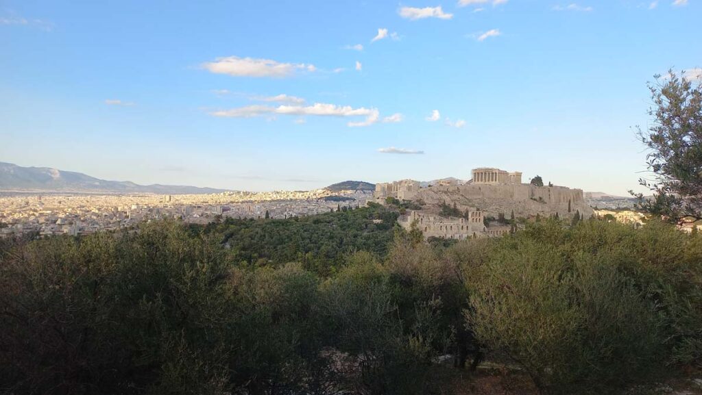 У центрі ми купили комбінований квиток до основних визначних місць. Авжеж найголовніше це Акрополіс, але наявність такого квитка вам створить справжній маршрут по місту, під час виконання якого, ви повністю схопите справжню атмосферу міста. Акрополіс дійсно такий пречудовий, як на різних фото, але максимальну віддачу ви отримаєте, якщо будете милуватись панорамним видом із сусідніх високих точок. Навколо Акрополіса великий парк із горами. І цей парк справжнє диво світу, я дуже раджу саме на цей парк закладати значну частину часу, щоб пройти усіма стежками.
