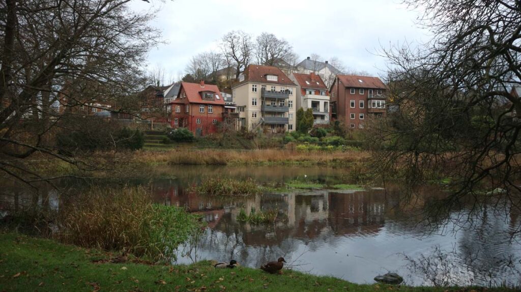 Оскільки житло в Данії дуже дороге, тож чим ближче жити до Леголенду, тим дорожче. Щоб забронювати житло за максимально людську ціну, ми поселилися в околицях сусіднього міста, тому зранку та ввечері на нас чекає довга прогулянка до міста і назад. Містечко невелике, і вдень навіть не так траурно виглядає, як ввечері.