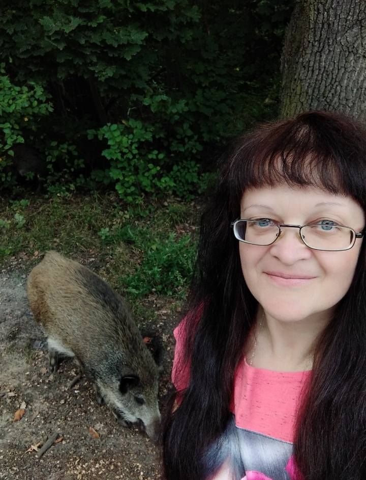 Як олень безстрашно до Дані тягнеться. А в нас тут дикі кабани оборзіли – ходять пішки по Варшаві, заходили і до нас на подвір’я. Я ніяк не наважусь на авантюру – почухати їх, хто зна, що в них на умі, але вчора підійшла вже на відстані десь так півметра, не більше.