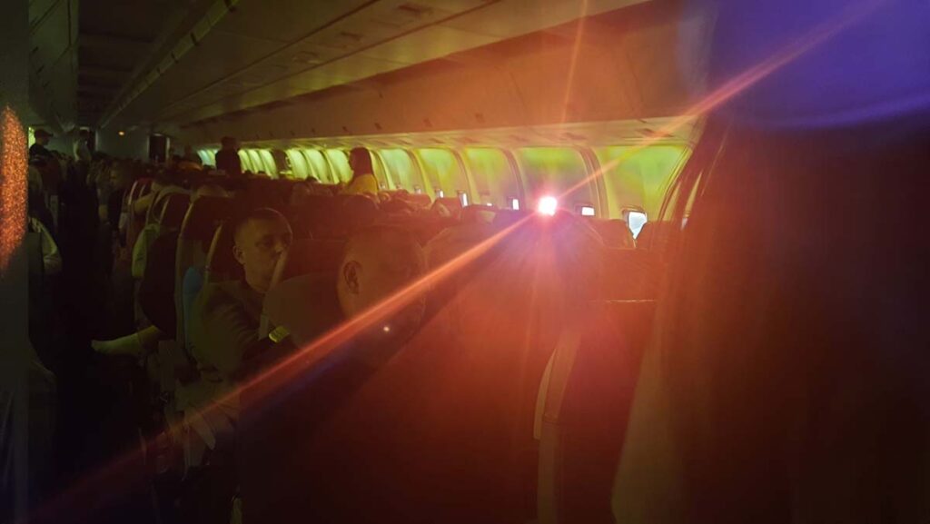Нашому рейсу випав сильний зустрічний вітер, то ж будемо летіти із дозаправлянням та на порядок довше ніж планувалось. По дивному збігу обставин на нашому рейсі була велика концентрація недоброзичливих людей. Я не знаю як так співпало, але та давня історія, коли на рейсі в Домінікану комусь прокусили палець мені вже не здається такою дивною. Мабуть, коли людей замикають без сонця у тісному літаку це починає масово давити на нервову систему. Я так і не зрозумів на що був розрахований той літак, але точно не на сидячих пасажирів. Найшвидші зайняли сплячі міста на підлозі біля аварійних виходів. А хтось взагалі, здавалось, вирішив вийти посеред польоту, чоловік підійшов до аварійної двері і зважуючись на неї дивився. Поряд сиділа жінка із переляканим виглядом. Я її заспокоїв, що аварійні двері посеред польоту відкрити в нього не вийде тож хай не переймається. Жінка поділилась зі мною своїм спостереженням, що люди летять дуже напружені. Але треба просто перетерпіти цей переліт. Тим паче якби я знав, що зворотного такого вже не буде ніколи, то я б ще менше переймався. Хоча б дуже дивувався, чому це зворотного перельоту цим літаком із цими людьми вже не буде. А тим часом за вікнами була найдовша ніч у нашому житті, ми летіли наздоганяючи сонце, що сіло. Для нас ніч продовжувалась близько 14 годин, тому вона і стала для нас полярною.