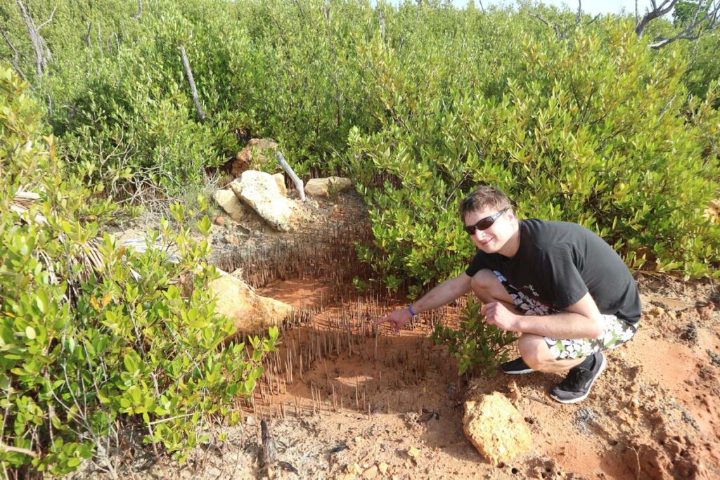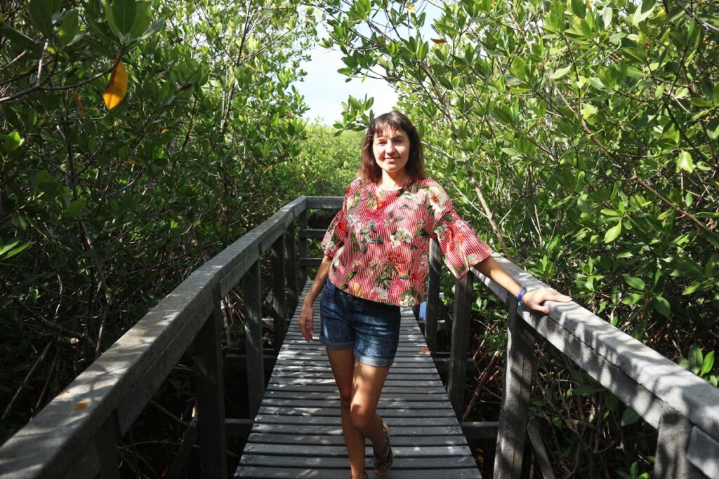 Мангри це одні із наших улюблених екзотичних рослин. Якщо ми у мангрових лісах, то ми у своїй стихії. Цікаво, чи водяться тут крокодили? Щось ми не погуглили, бо це теж може бути їх стихія. Тепер нас розпирали двоякі почуття, з однієї сторони хотілось зустріти крокодила, а з іншої не хотілось, щоб він зустрів нас. Але нас зустріли комарики та з’явилось логічне питання, а що тут взагалі із малярією?