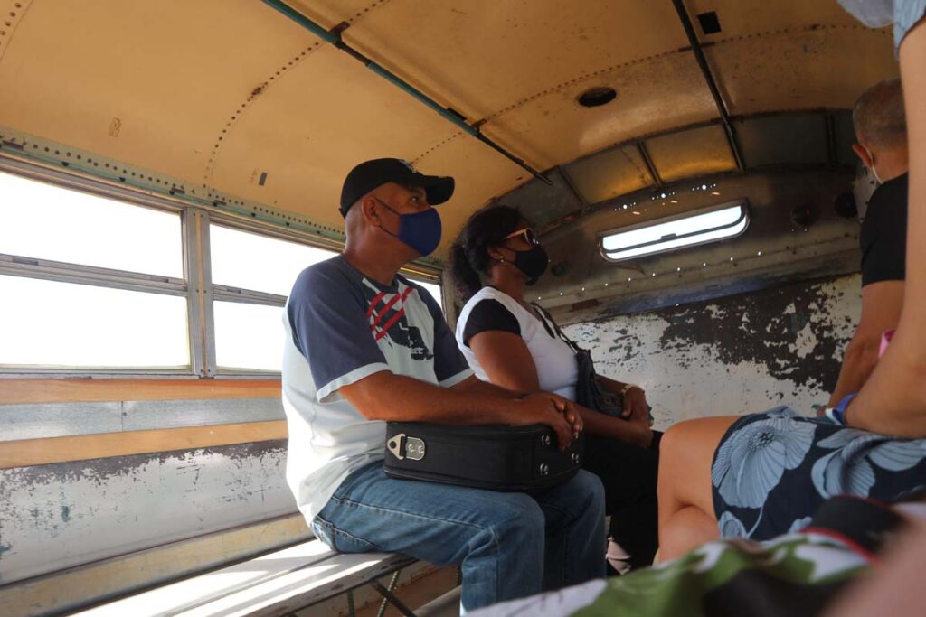 Ми ще з Києва взяли із собою маски із трубкою. Тож були підготовлені. Тепер нам потрібно доїхати на туристичному автобусі до автовокзалу Варадеро. Пройти повз вічну чергу до банку. На жаль мені здається, що кубинці проводять половину свого життя стоячи у чергах до банків. Я не знаю, що не так із банківською системою тут, але відділення завжди можна ідентифікувати по довжезних чергах. Особисто мені не зрозуміло, чому тут не можна прокласти, наприклад місцеву мережу, щоб розвантажити запити до банків. Тим паче що у готелях інтернет є і достатньо швидкий, щоб виконувати онлайн запити. Смартфони теж наче б то є у місцевих. Але це моє прагнення усе оптимізувати. Можливо кубинці до черг ставляться по-іншому. На автовокзалі нам сказали, що ми як туристи нікуди дістатися не зможемо самі. Є деякі автобуси, які ходять дуже рідко і в незручний час. Тоді йдемо на трасу ловити автобус. На наше щастя, місцевий чоловік взяв нас під свою опіку. Він сказав, що їхати треба буде із пересадкою, пояснив скільки буде коштувати проїзд і сказав, щоб ми просто були поруч. Перший автобус, що зупинився сказав чоловіку що не візьме туристів, навіть тих у яких є песо. Чоловік сказав що теж тоді не поїде і залишився із нами. Довічна подяка тобі незнайомцю за це. Інший автобус погодився нас узяти. Автобус то було гучно сказано, це було щось подібне до вантажівки де позаду усі сиділи на лаві.