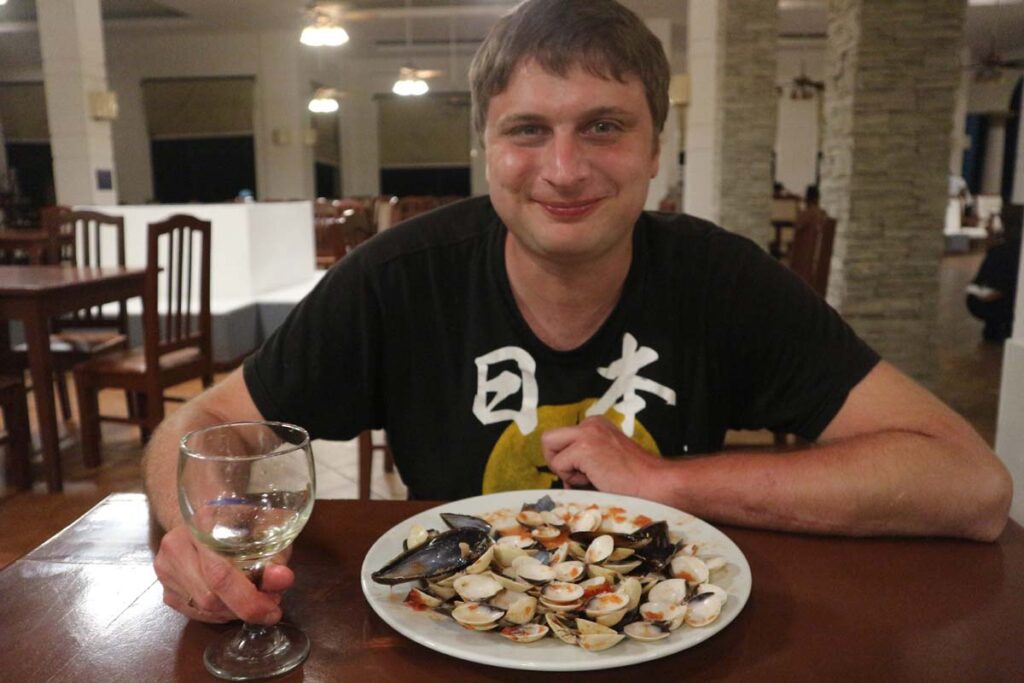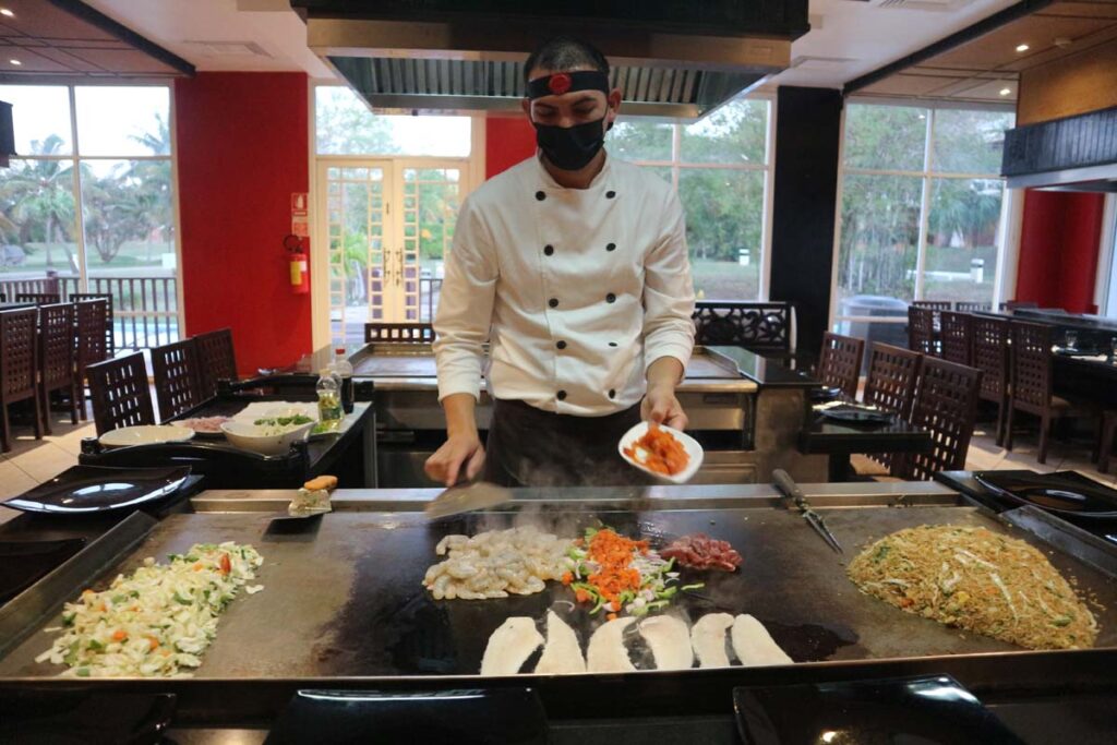 Для урізноманітнення відпочинку час від часу ми ходили до включених аля карт ресторанів. Сьогодні був японський ресторан. Відвідувачі сиділи по колу за столом, посередині кухар витворяв трюки із їжею та приборами. Під час трюків потрібно було ловити їжу, було радісно та весело.