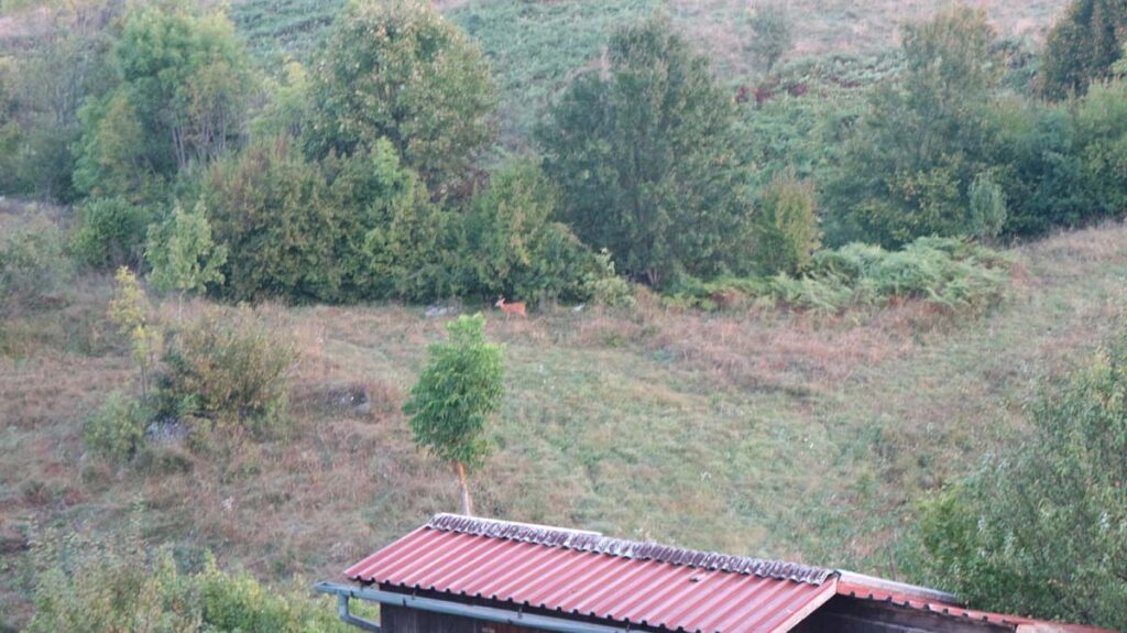 А ось ранок почався як у фільмі-казці. Недалеко від нашого вікна прийшов олень. А десь далі гуляли його друзі. І все це на фоні світанку. А знаєте, зранку цей ліс виглядає не так вбивчо! Вперед на озера!