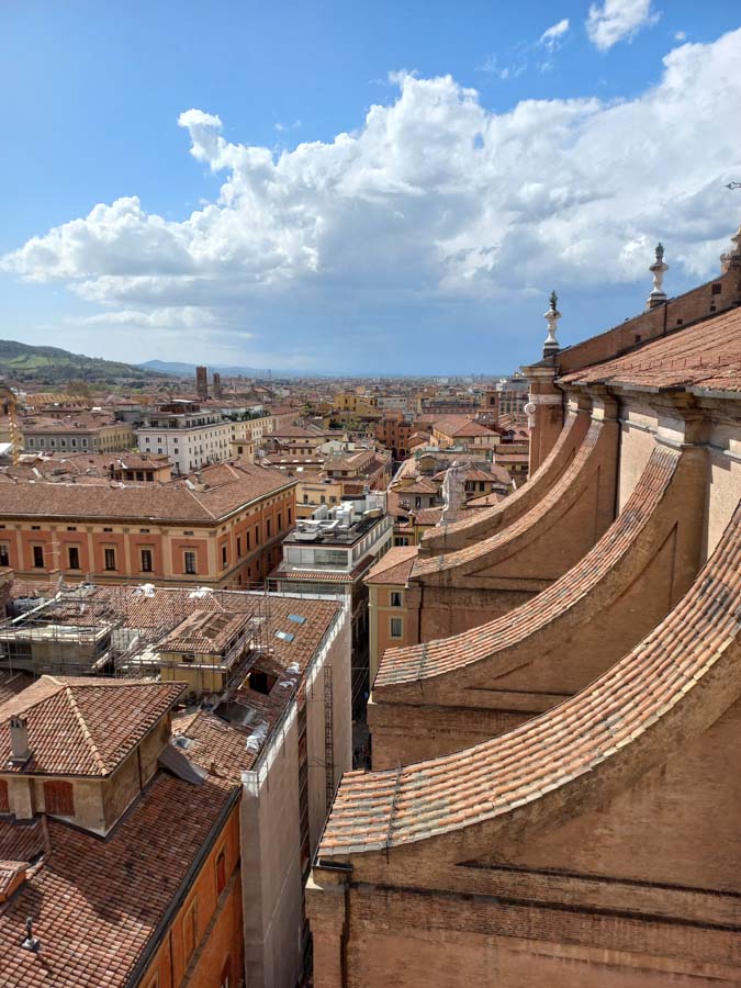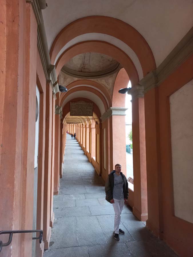 Підемо краще подивимося що ще є цікавого в цьому червоному місті. По кольору до речі, Болонью легко відрізнити від інших італійських міст. Тут усі будівлі зроблені в єдиному цегляному, червоному стилі. Якщо ви вдосталь погуляли по старому місту, то далі на туриста чекає челендж — треба дійти до одного з головних визначних місць. Це храм, що знаходиться, м’яко кажучи, за містом і на горі. Але всюди будуть арки, і схоже з досвіду інших туристів, без дощу на цьому маршруті ніяк не можна.