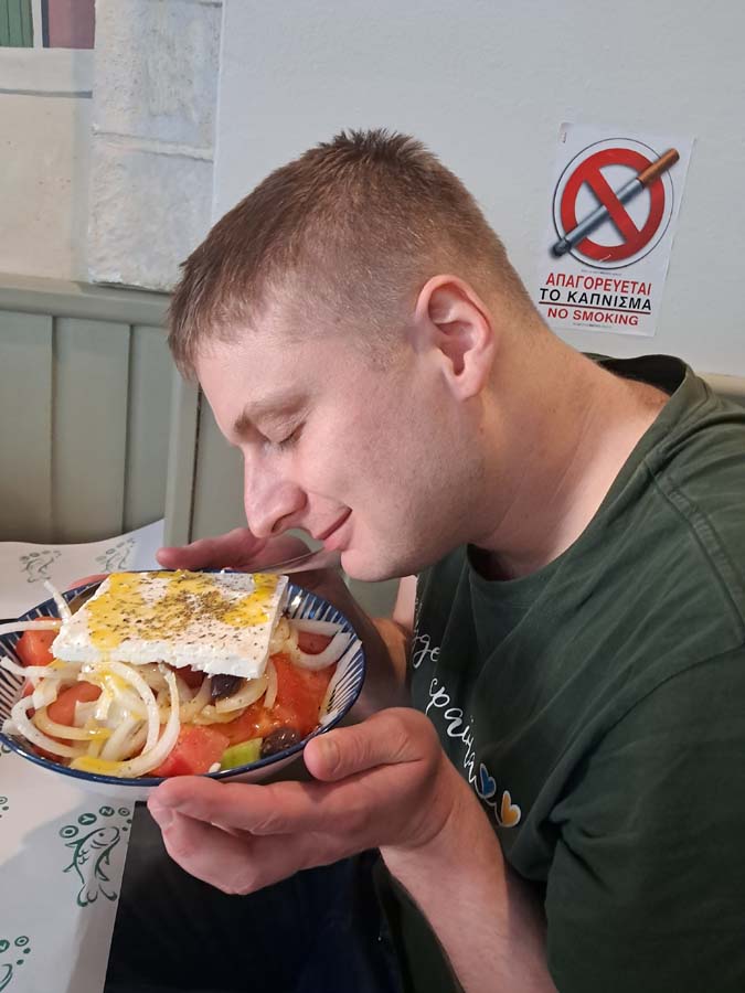 Як раз по дорозі був ресторанчик з високим рейтингом. Аня чекала на знайомство зі знаменитим справжнім грецьким салатом не менше за мене. Але ідея зазнала фіаско, Аня в уяві переплутала грецький салат із цезарем. Тож коли принесли таки грецький, а ти очікуєш шикарний цезар… Насправді як з’ясувалося у нас смаки по кухні з Анею та Віктором кардинально розходяться. Наприклад у кондитерці, де продавався дуже смачний заморожений йогурт, вони кожен раз брали морозиво. Я звісно розумію, що у всьому світі схоже тільки я і Мишко любимо фрозен йогурти, але смаки у нас з ними різні. Окрім того випадку із професорською шоколадкою, але це вже зовсім інша історія))) Повернемося до заселення.