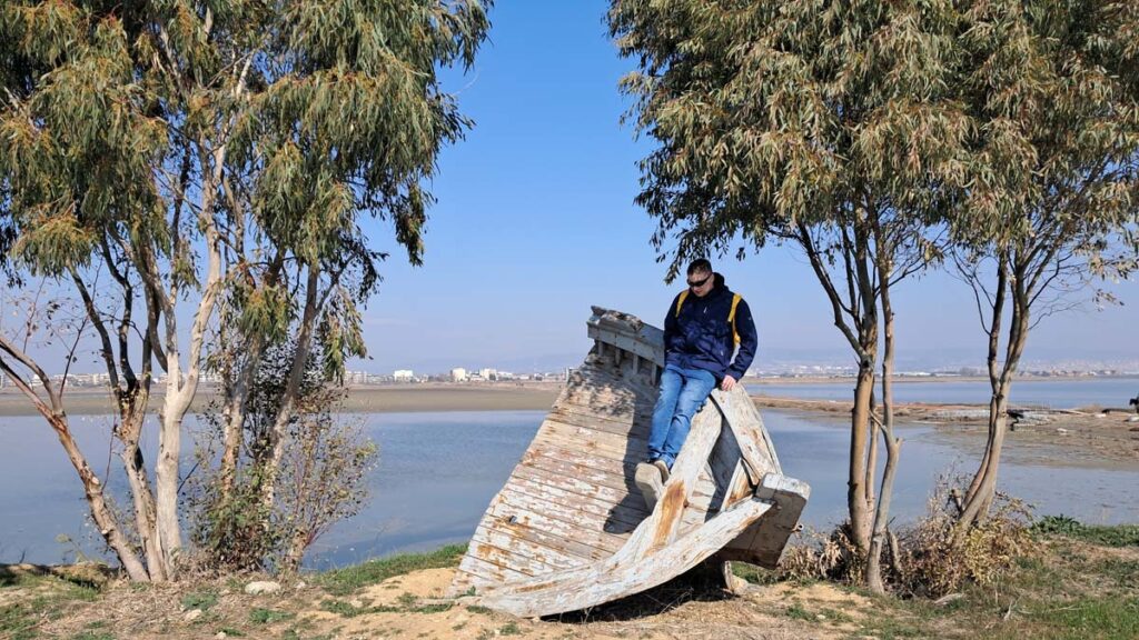 Ми вийшли десь на краю світу, тут вже майже нічого не було. І якби земля була пласкою, то кінець був би однозначно тут. Перше, що ми успішно вполювали — це розкладна підставка для штучної ялинки. Перед Новим роком ми вдома успішно вполювали дві ялинки, але не було жодної підставки, тож на Новий рік замість підставки було задіяно два стільця, мотузка, ковдра та пилосос. На щастя підставка помістилася в рюкзак. Вже не дарма приїхали. Тепер ми йшли з іншими людьми кудись у нескінченність. Перший фламінго якого ми побачили був намальований на табличці, далі ще приблизно 100 пташок стояло десь далеко-далеко. Ні, так не піде, я хочу ближче побачити фламінго. Нумо обходити це озеро серед пустелі. Скоро ми дійшли до моря, тут лежав розпилений навпіл човен та справжня кав’ярня на краю світу.