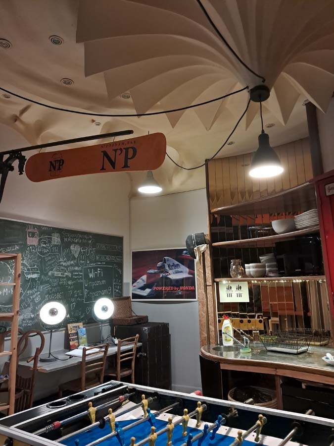 Тут є і барна стійка і посуд з міні-кухнею, шкода тільки пивного крана немає. Вниз по сходах перероблені складські приміщення під помешкання, там у нас була ціла велика кімната, а враховуючи, що в цьому барі більше ніхто не жив, то взагалі все було навколо наше. Доки Мишко дивився внизу телевізор, ми з Дашею пили чай за столиками поруч з барною стійкою у власному пабі. До речі, що ми тільки на букінгу не винаймали, вже навіть печери, але паб то вперше. Хоча пригадую, все-таки було у нас житло в Кам’янці-Подільському, в якому раніше було кафе. Теж дуже цікавий досвід.