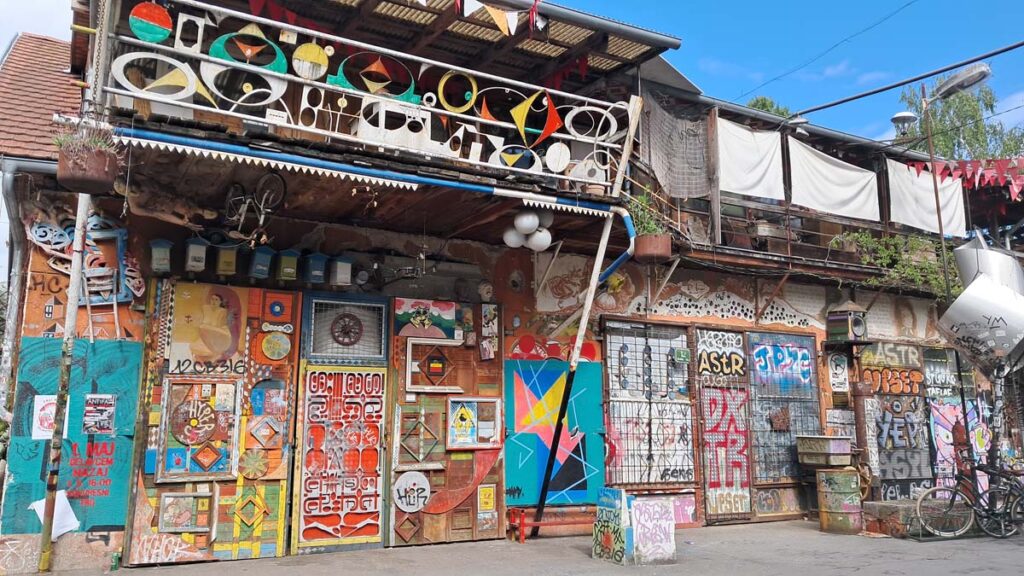 Тепер є ще трохи часу на затишну столицю. Вже був вечір і мости увімкнули свою підсвітку. Вздовж головної річки ресторани розставили свої столи і всі душевно трапезували. Ми з Дашею завжди поділяємо міста на класні, де всі завжди їдять, і звичайні. Тож Любляна одразу зайшла у фаворити. Навіть якщо їсти не треба, то можна перейняти атмосферу. А в особистому пабі на нас чекає незвичайний смачний гірський чай. З самого ранку я сходив до пекарні за свіжою випічкою. Після сніданку ми пішли досліджувати квартал сквотерів.