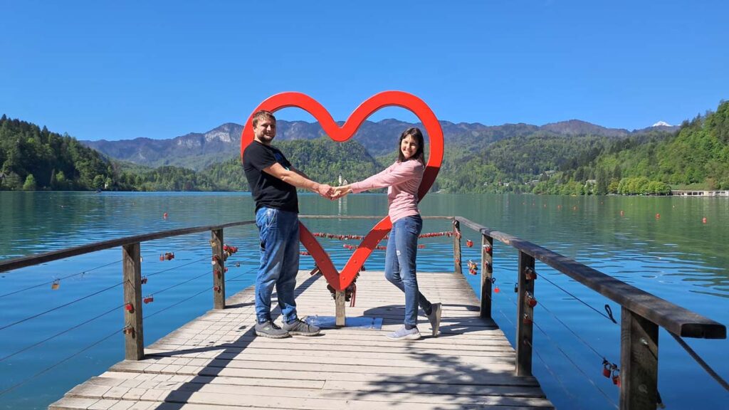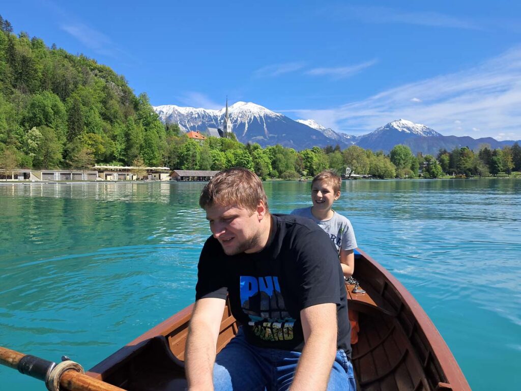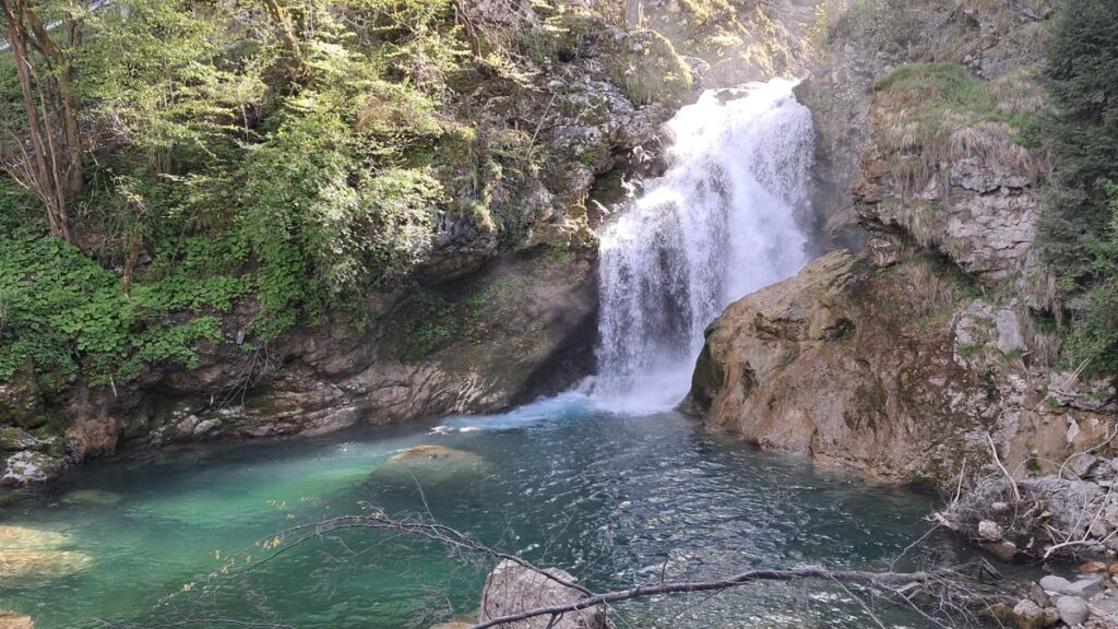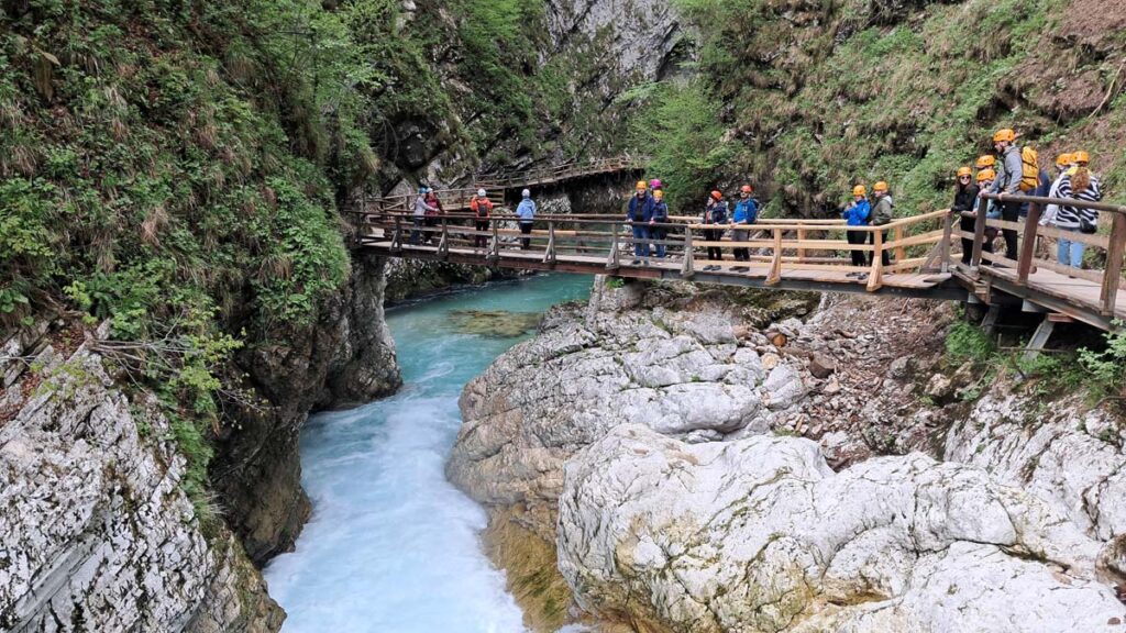 Ми приїхали на головний курорт країни – озеро Блед. З автобуса нас зустрів господар і повіз до нашого будиночка. Далі на нас чекала несподіванка. В кінці квітня тут національне свято і магазини закриті, а завтра неділя, тож магазини також будуть закриті. На щастя, є приватна дорога пекарня, але на нещастя вона не смачна. Трохи попали. Але потім розберемося. Зараз потрапезуємо на березі озера і відправимося в довгий піший маршрут до каньйону. Піший до речі, тому що через свято автобуси не ходять… Озеро під сонячними променями дійсно нескінченно красиве. Його можна включити в топ озер з красивою водичкою. Яскравіше на нашому досвіді тільки озеро Тено, біля Гарди в Італії. Чому ж так холодно?! Насправді було доволі тепло, просто єдина лавка була в тіні, а тінь чомусь давала ефект зворотної сторони місяця. Дорога до ущелини займала приблизно годину, хоч була і трохи під кутом, але з доволі мальовничими місцями та поселеннями. Вхід в каньйон платний, по 10 євро з дорослого. Це хвилин на 30 маршрут по місточках над річкою з бірюзовим кольором води. З мінусів це кількість людей і те що треба вдягати каски.