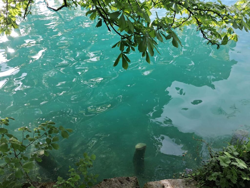 Я вирішив не дивитися ціну і сказав щоб Даша замовила, а я оціню на смак скільки воно може коштувати. Було смачно, красиво, але схоже тістечко було зроблено явно з чогось дуже натурального і мені не вистачало сучасних штучних смакових фішок. Тож, нарешті настав час дізнатися за яку ціну ми заплатили за еспресо і тістечко. Барабани били, трубачі грали, час зупинився, на терміналі бачу ціну в 14 євро. Ну добре хоч житло не довелося закладати. Тепер вже по традиції підемо далі навколо озера. Зазвичай подорожі по Європі проходять без визначних пригод, але тут був невеликий виняток. В озеро впадає невелика річечка і я оцінивши її ширину вирішив продемонструвати Мишкові як я можу перестрибнути цілу річку.