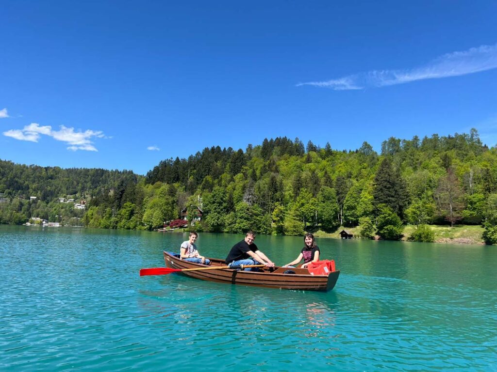 Ще один фантастичний день на фантастичному озері. Точніше у нас є пів дня. Цього як раз вистачить щоб піднятися на оглядку і орендувати човника. А ще приємна новина, нарешті будній день і відкриті супермаркети. Тож можна було нарешті не дорого пообідати у себе на терасі. Фірмове бледське тістечко з маркета обійшлося трохи дешевше ніж учора в ресторані. Тож кава плюс тістечко, на цей раз коштувало 1,79 євро.